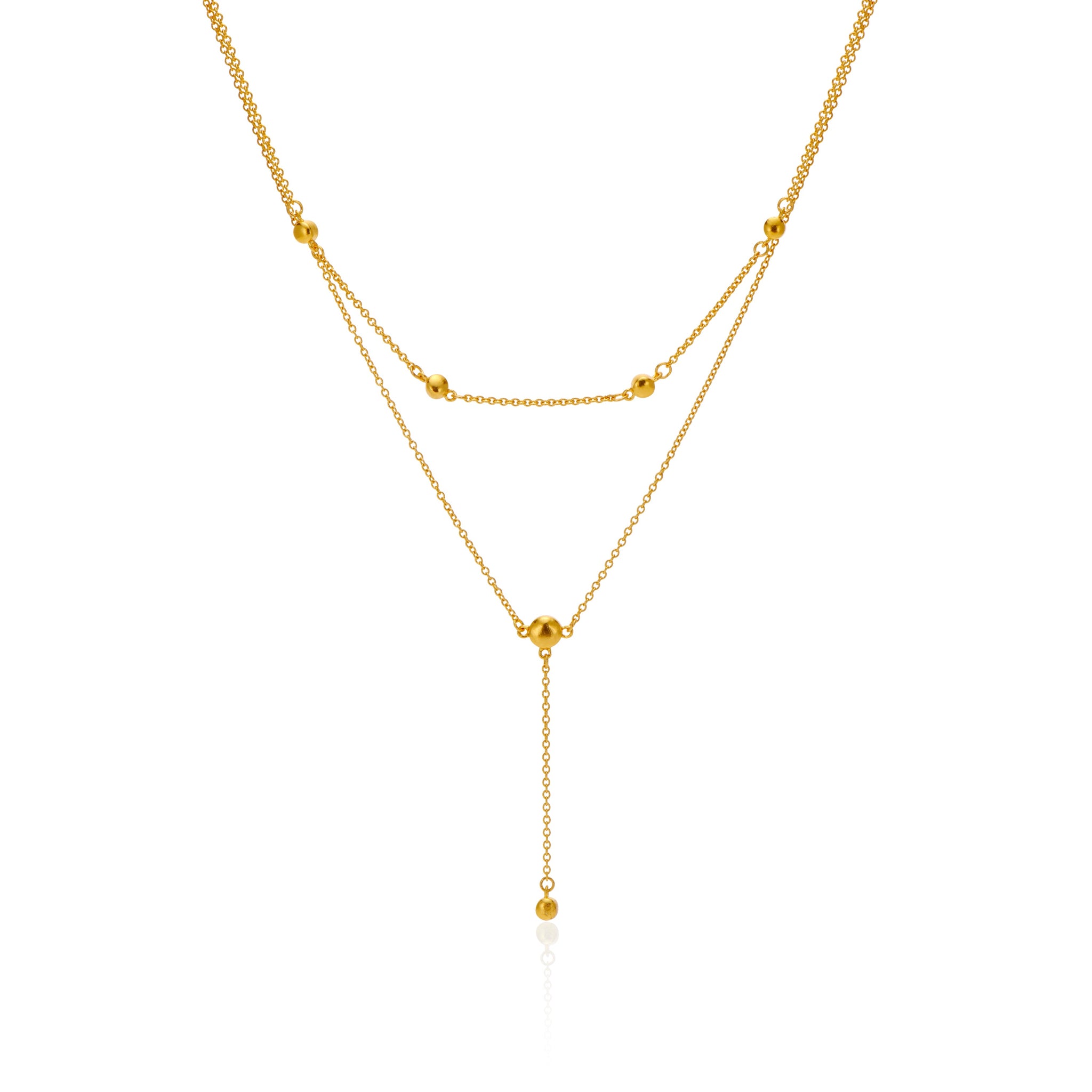 A delicate procession of golden spheres, anchored on a narrow chain. The Beads Necklace adds quiet rhythm and movement in 24k gold, perfect worn alone or layered in elegant succession.
