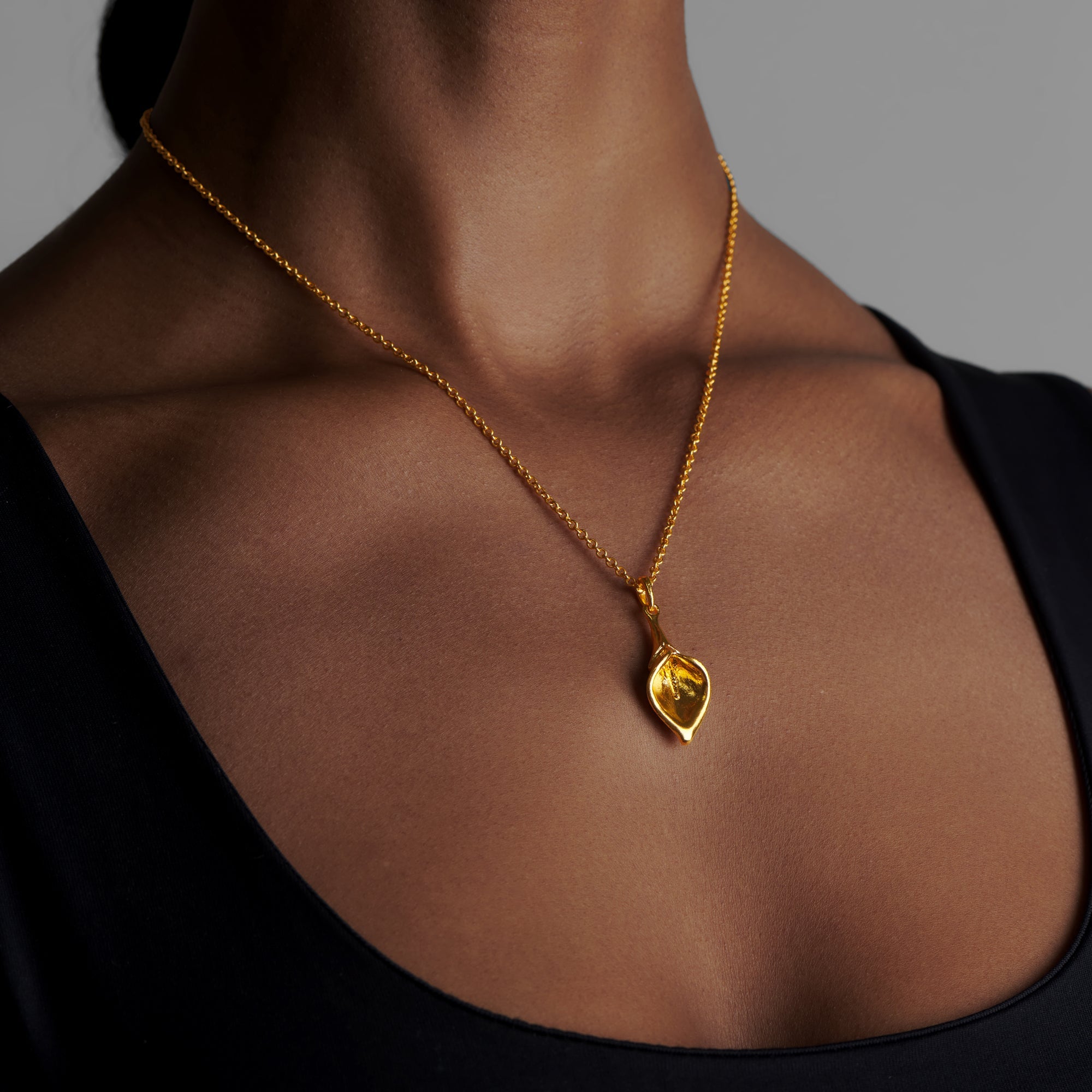 A symbol of magnificient beauty, the 24k gold Calla Lily Pendant is an enduring reminder of bliss and devotion. Pair with the Calla Lily Earrings for a breathtaking set.