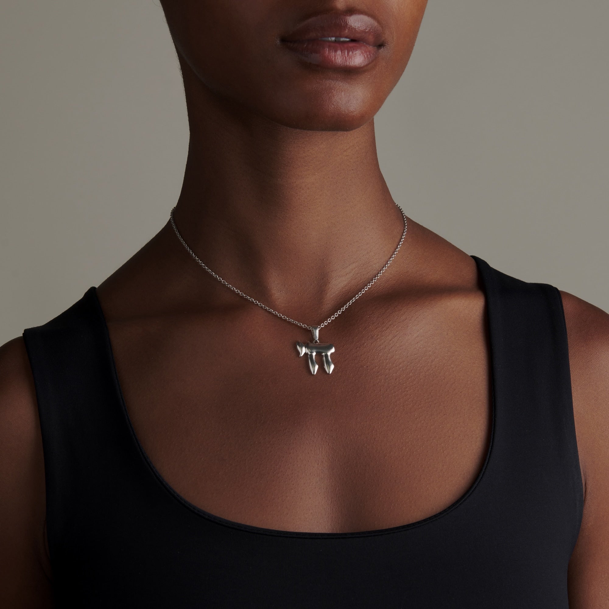 Intricately designed, this pure platinum pendant features the Hebrew symbol "Chai," representing life, vitality, and good luck.