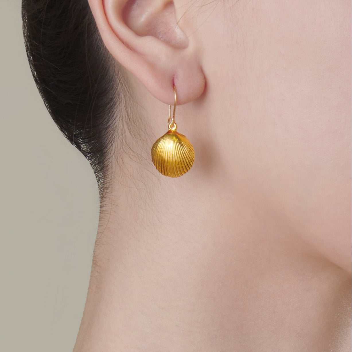 Twin tokens of the ocean, the Clam Shell Earrings in 24k gold replicate the natural scalloped form of a clam shell. Lightweight yet substantial, made for those drawn to the elegance of coastal forms.