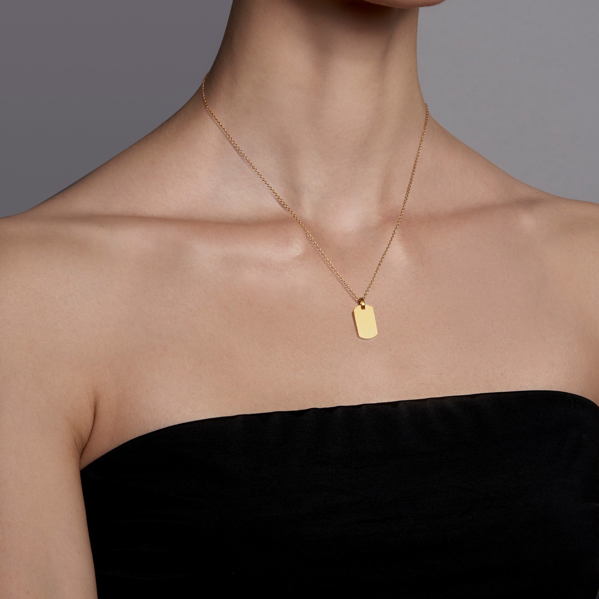 Subtle yet radiant, the 24k gold Dog Tag is a perfect piece to personalize with engraving.
