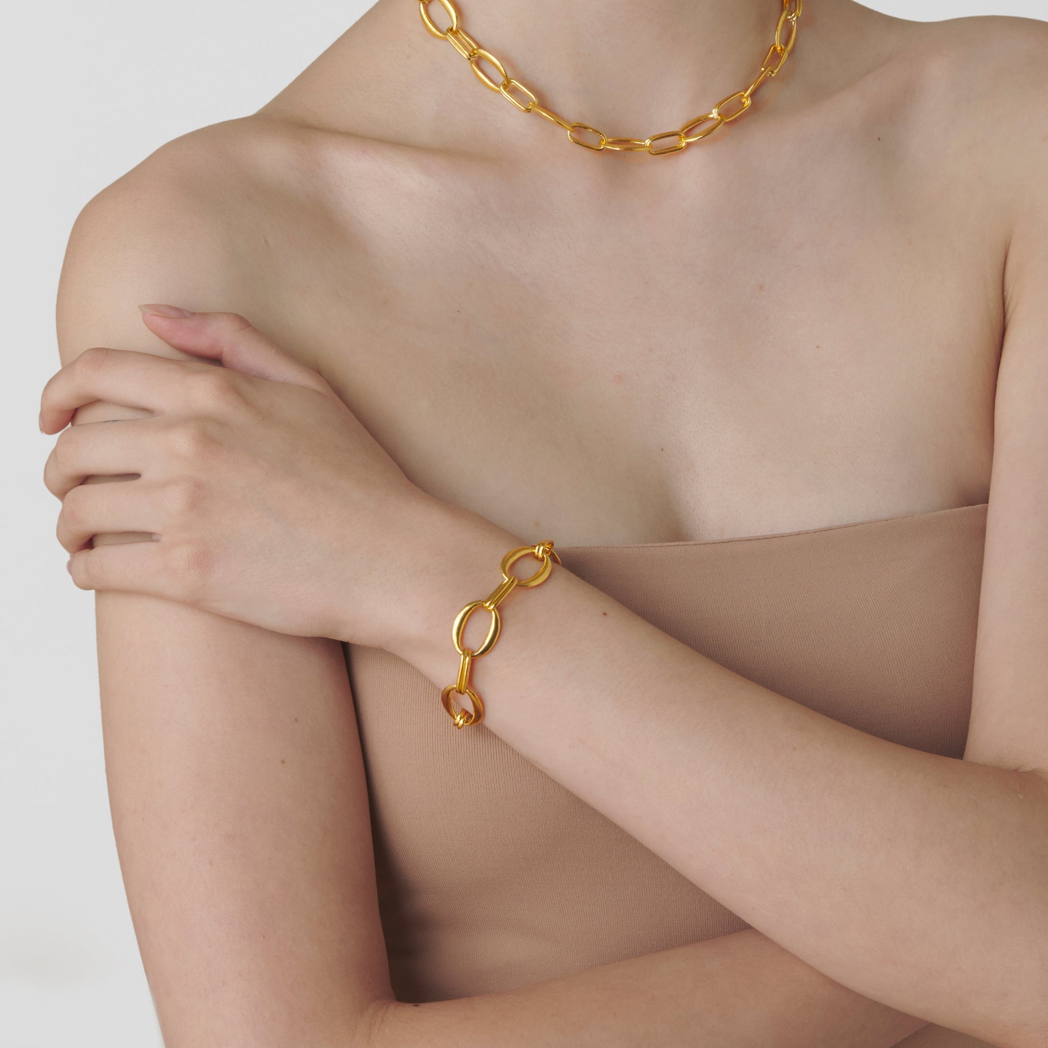 Interlocking strands of 24k gold, the Double Link Bracelet wraps the wrist in a continuous flow of strength, elegance, and permanence.