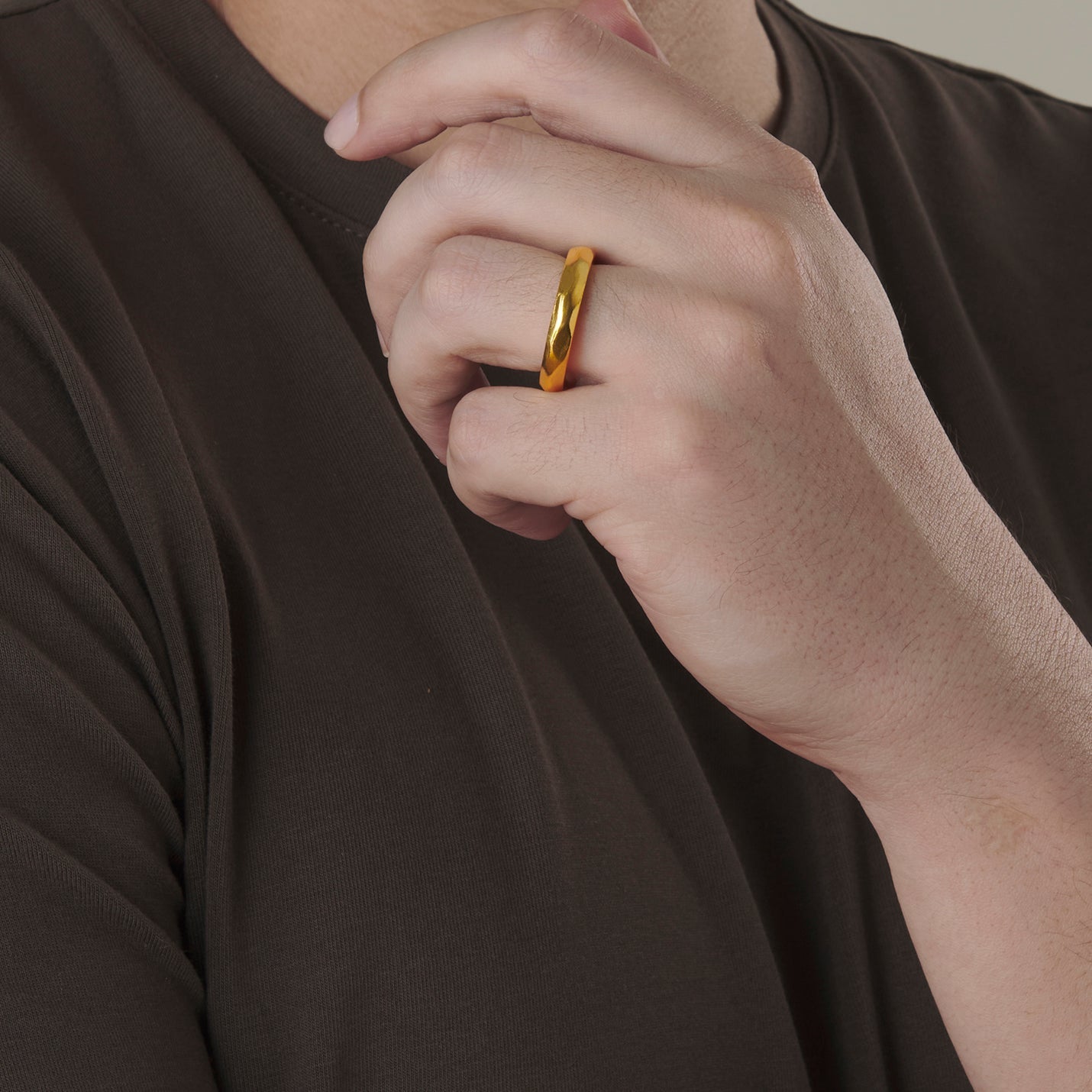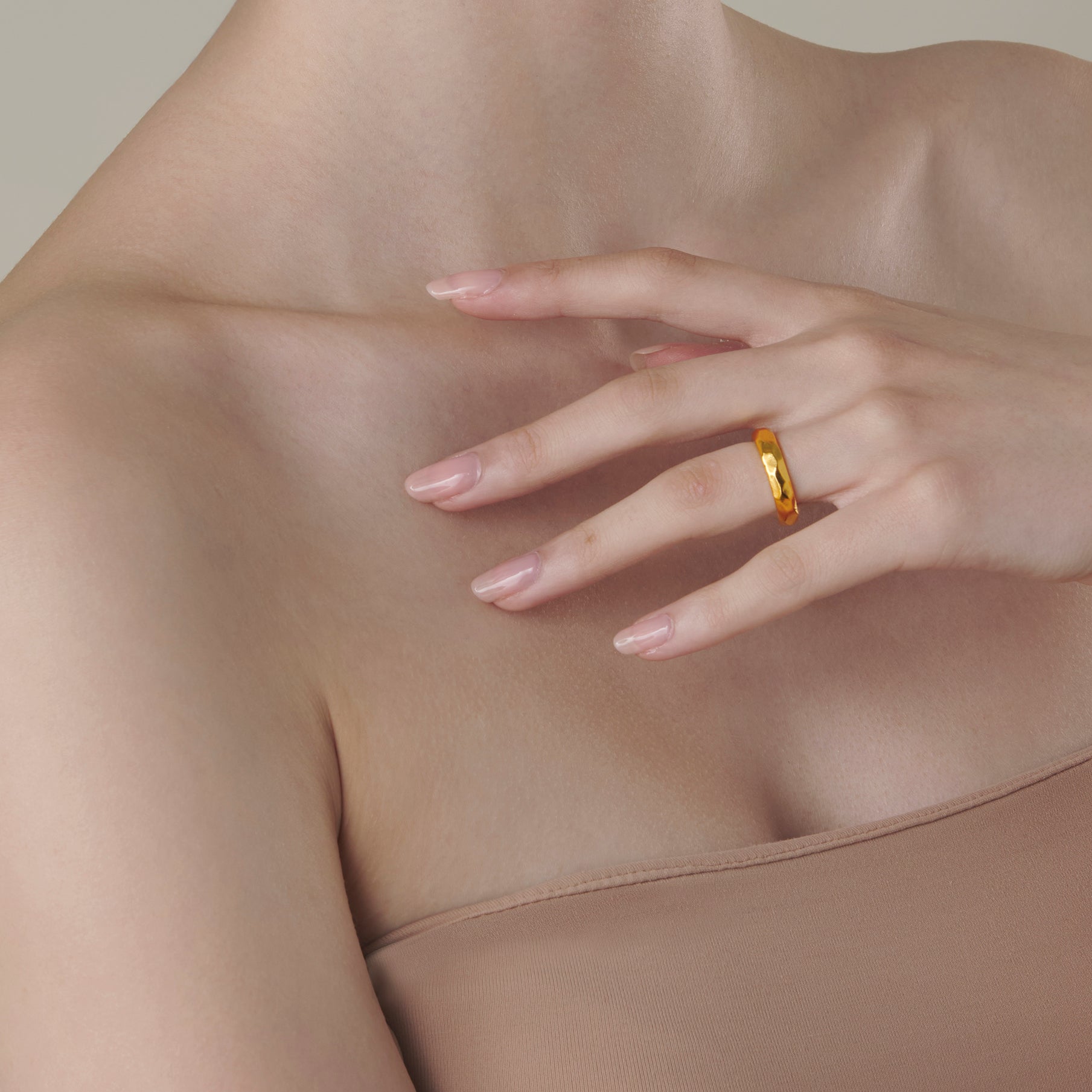 Sculptural and balanced, the Faceted Band features a surface that reflects light with quiet brilliance. A modern classic in 24k gold.