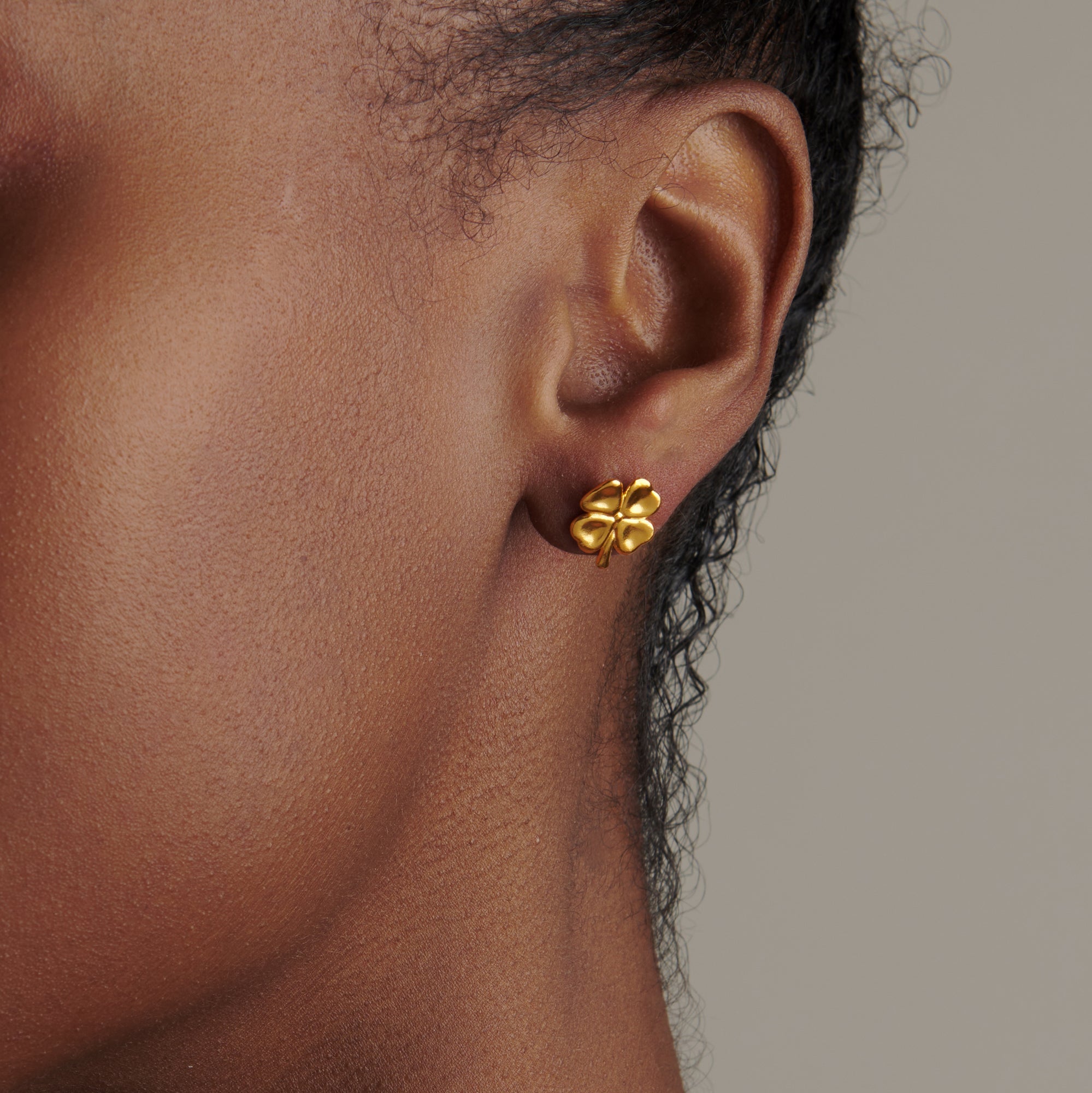Each Four Leaf Clover Earring features a delicate four-leaf clover design, symbolizing hope, faith, love, and luck. Crafted in 24k gold, wear these earrings to carry a bit of good fortune with you wherever you go.