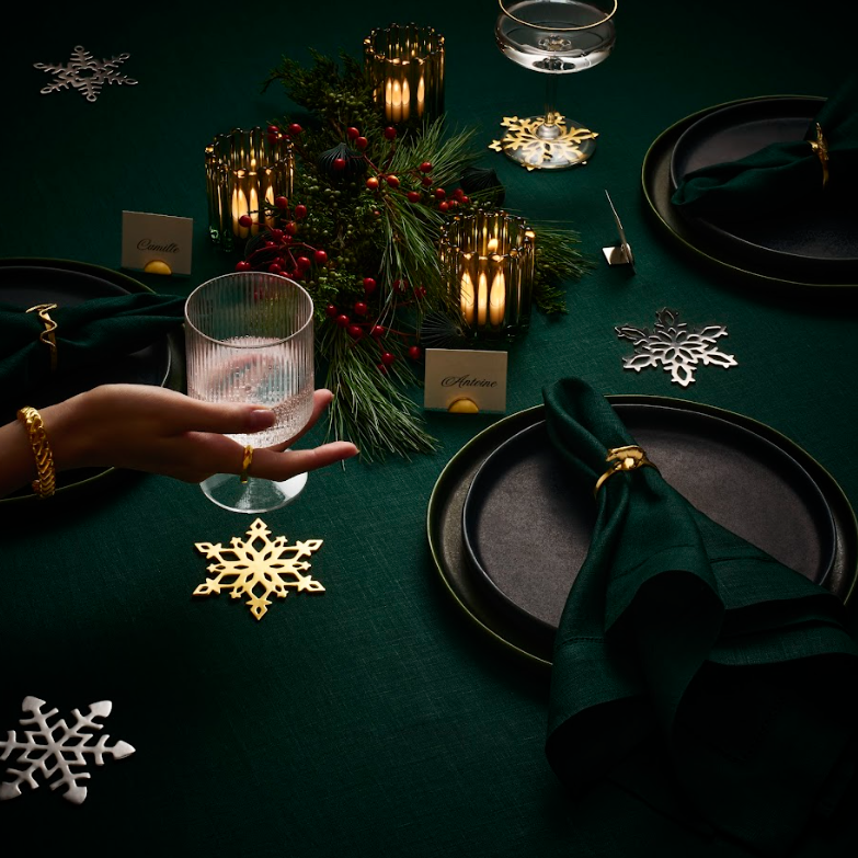 A bold geometry of ice, reimagined in 24k gold. This design celebrates the symmetry of winter, rendered luminous and timeless.