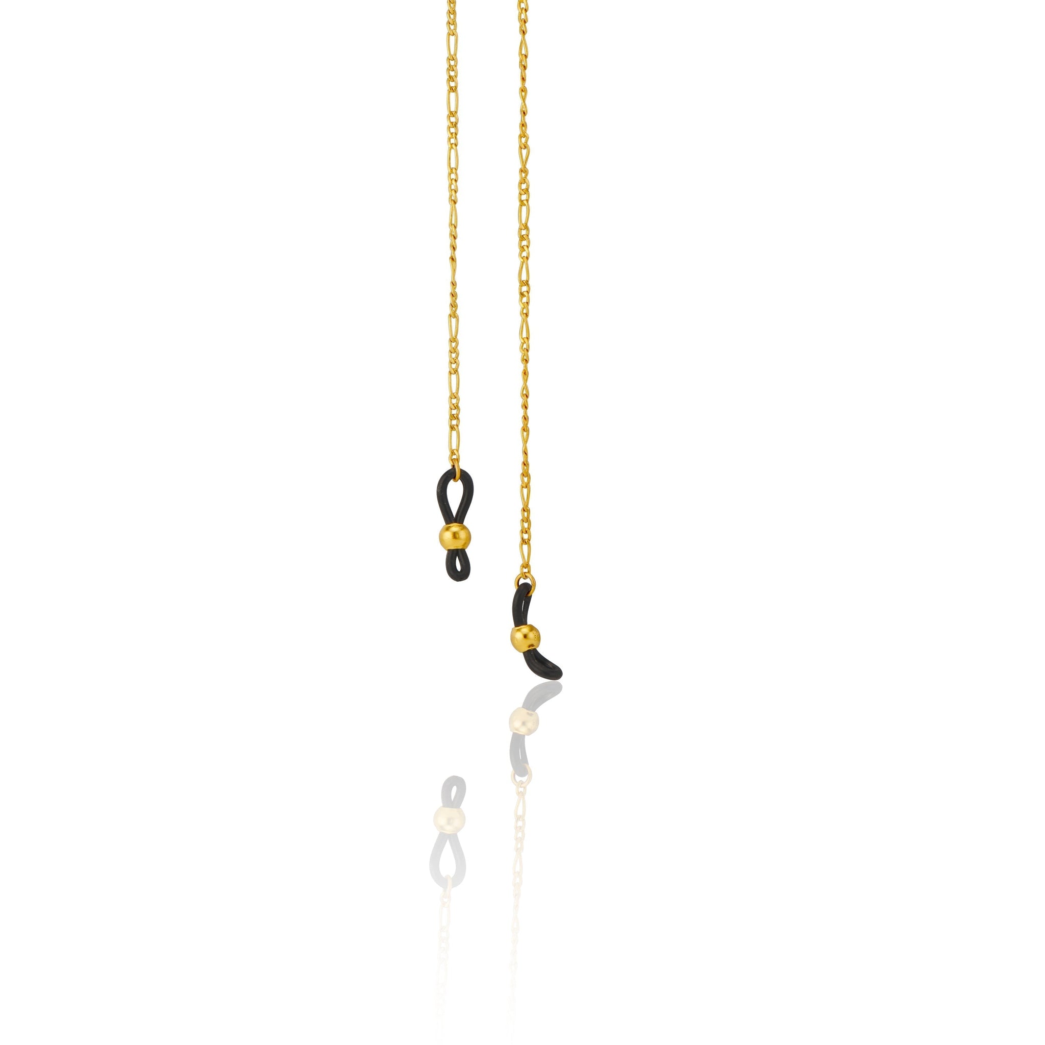 Function meets refinement. The Narrow Figaro Glasses Chain in 24k gold drapes with fluid elegance, turning practicality into quiet luxury.