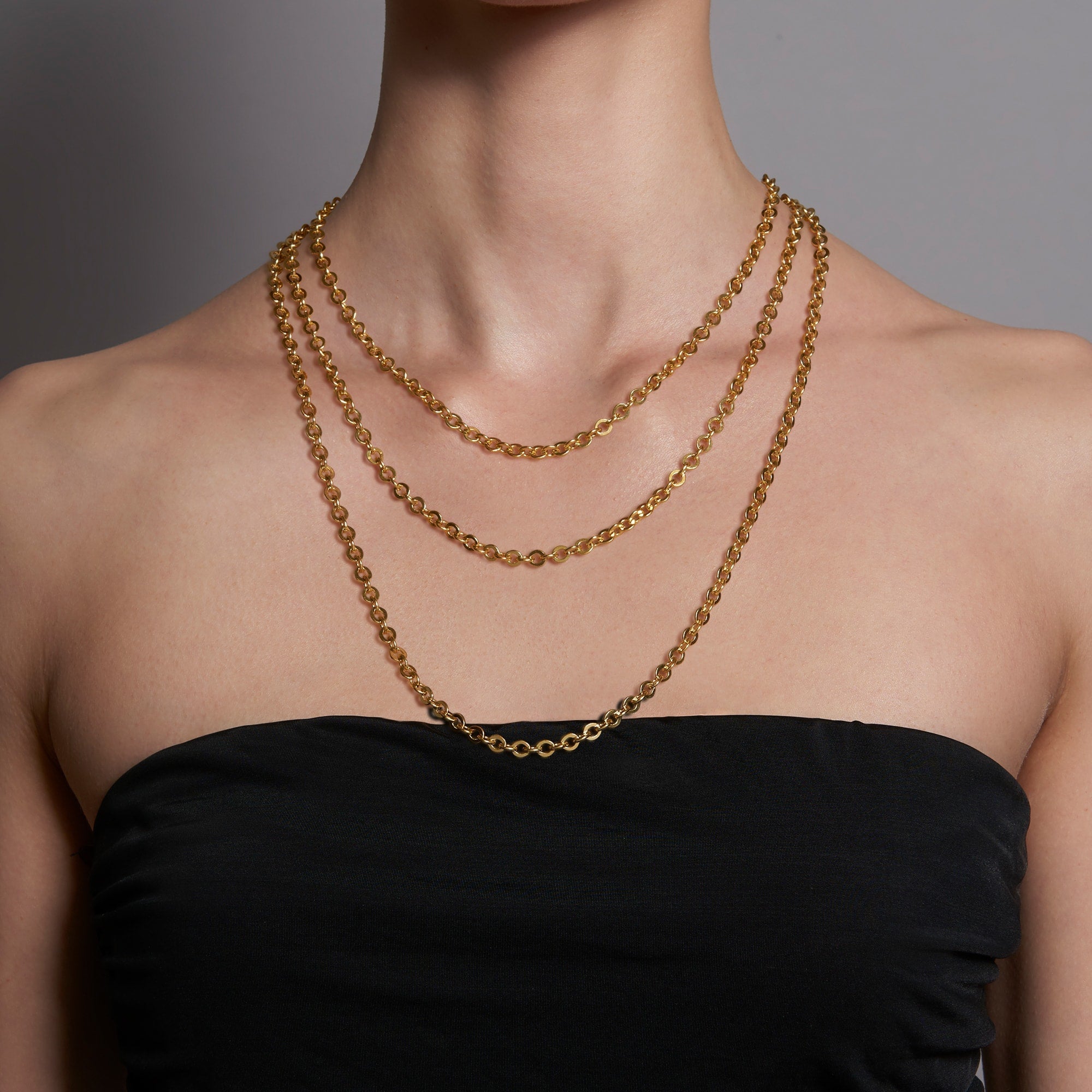 The 24k gold Heavy Cable Chain is a masterpiece of gold workmanship. Guaranteed to turn heads no matter what room or runway you walk on, the large links convey and command the luster and brilliance of 24k gold in a way that has never been done.