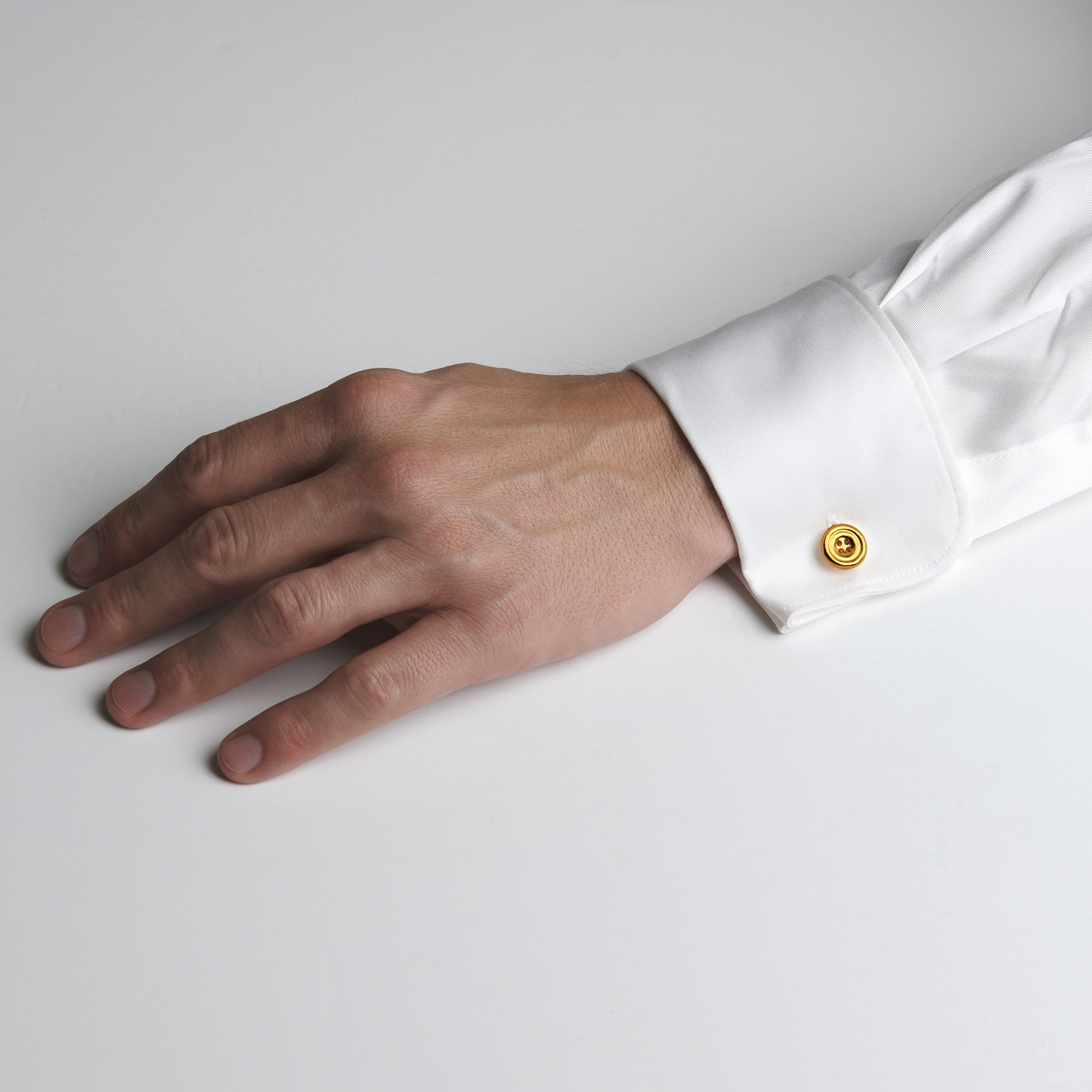 Precision and poise define the Huntsman Bevelled Button Cufflinks. Designed in 24k gold for the discerning gentleman, their smooth finish and sculptural form bring a distinguished edge to formal attire. Whether worn for an evening engagement or a day of business, they are a hallmark of refined style.