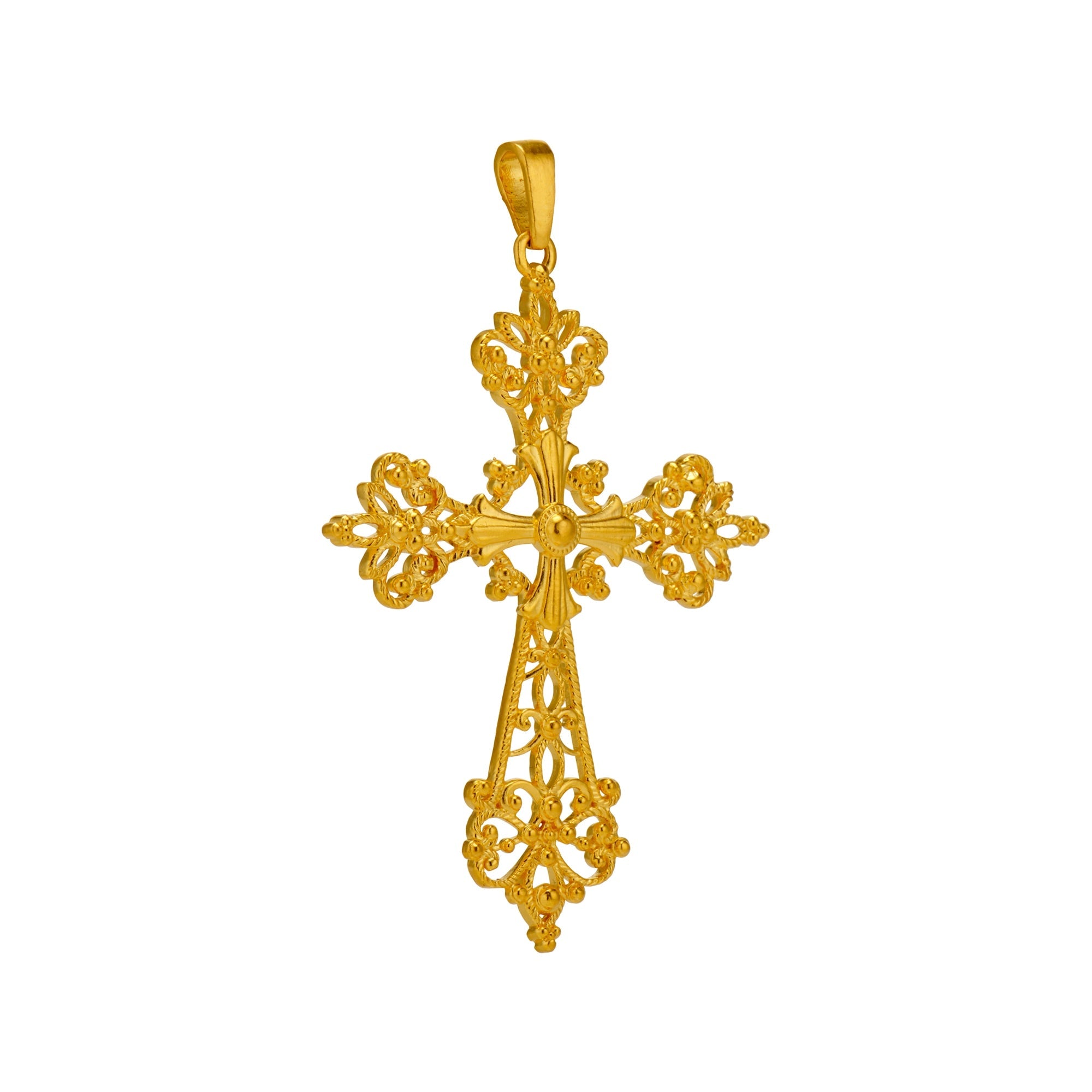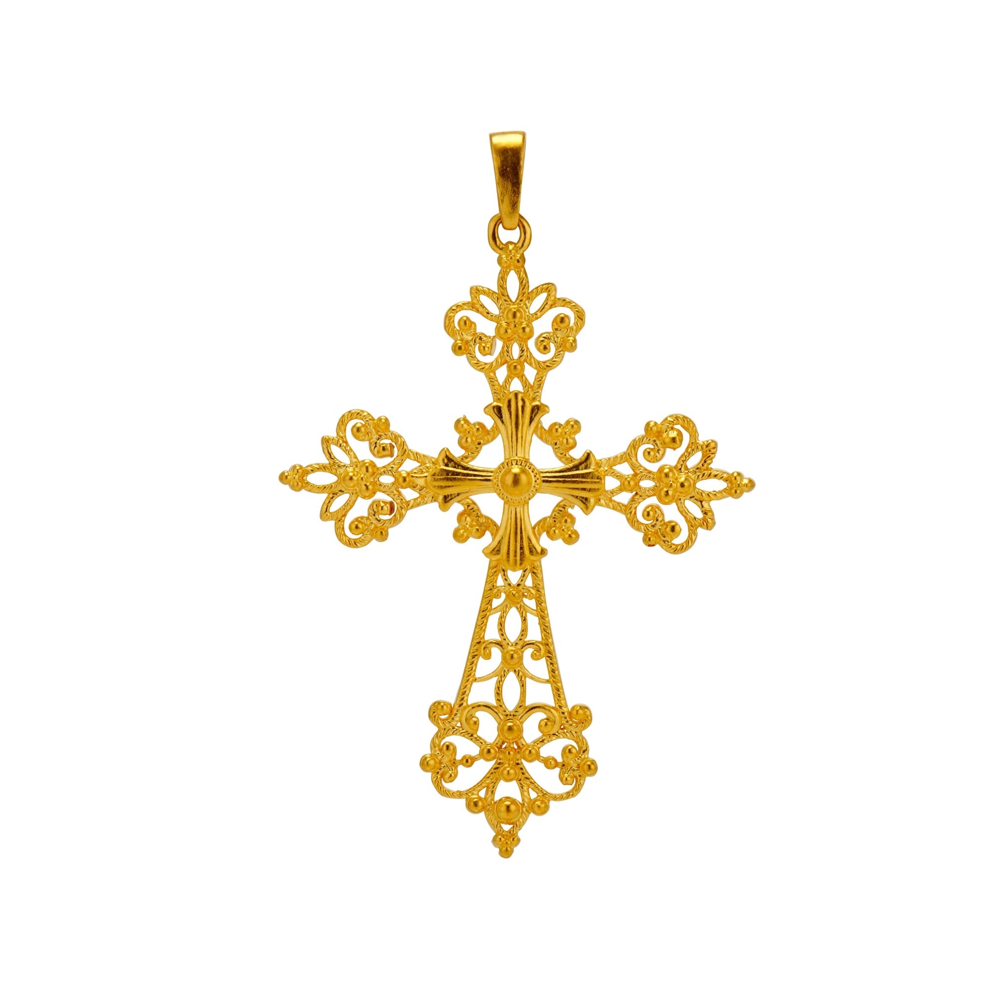 Let the Lace Cross Pendant be a splendent token of your faith. Handcrafted from everlasting 24k gold, the intricate design and delicate details are a reminder of the complexity and beauty of the spiritual journey.