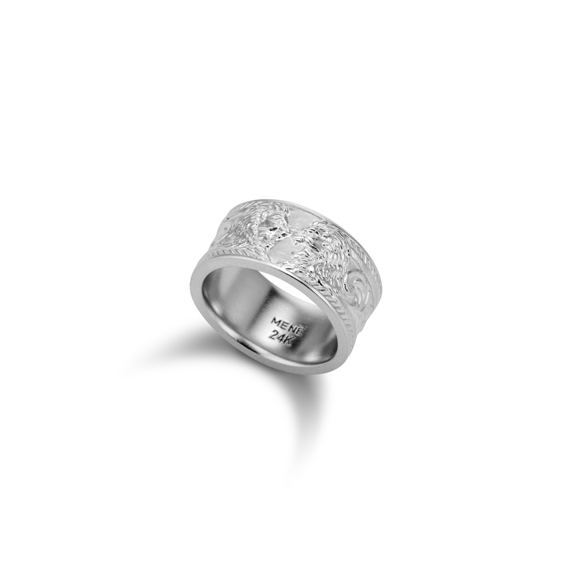 Reminiscent of a historic bronze relief, the Lion Head Band flashes with pride and strength in luxurious pure platinum.