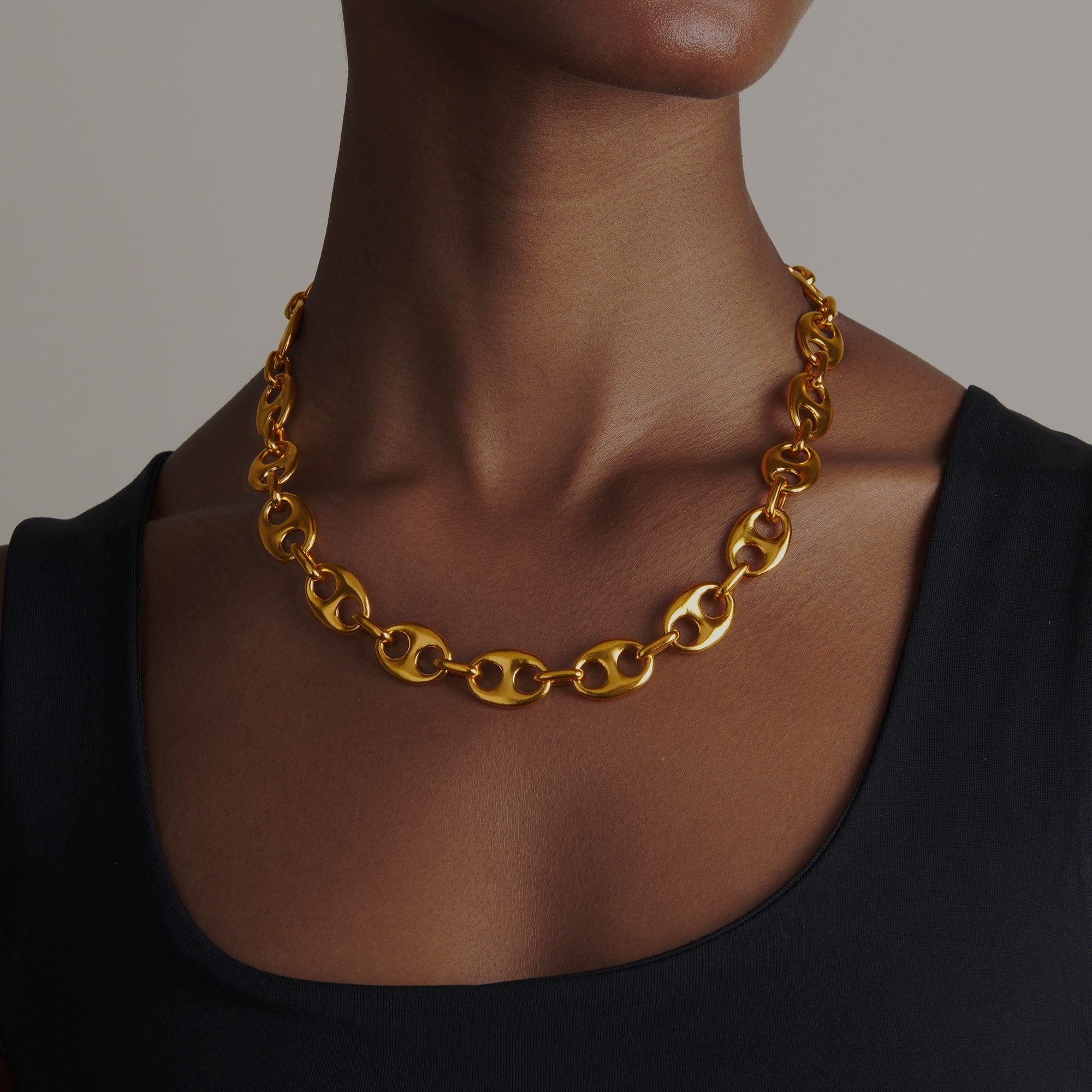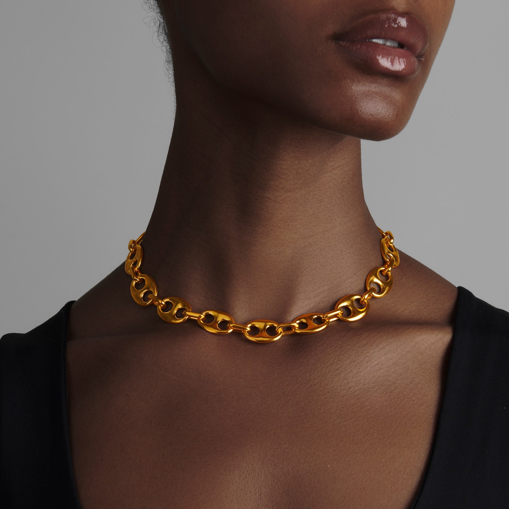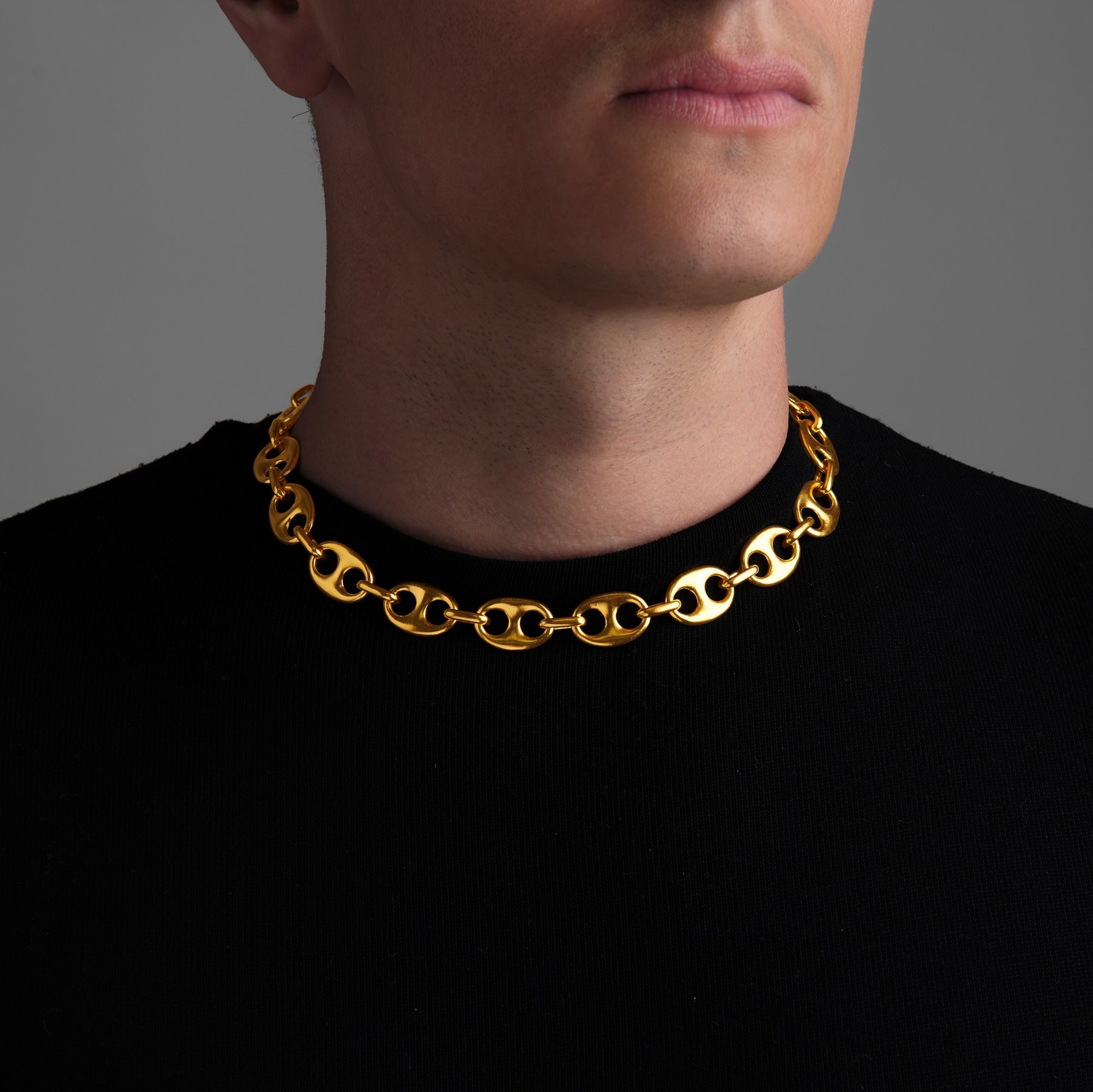 We took the Mariner Chain and re-imagined this nautical tour de force in 24k gold. Bold links create an unmistakable silhoutte.