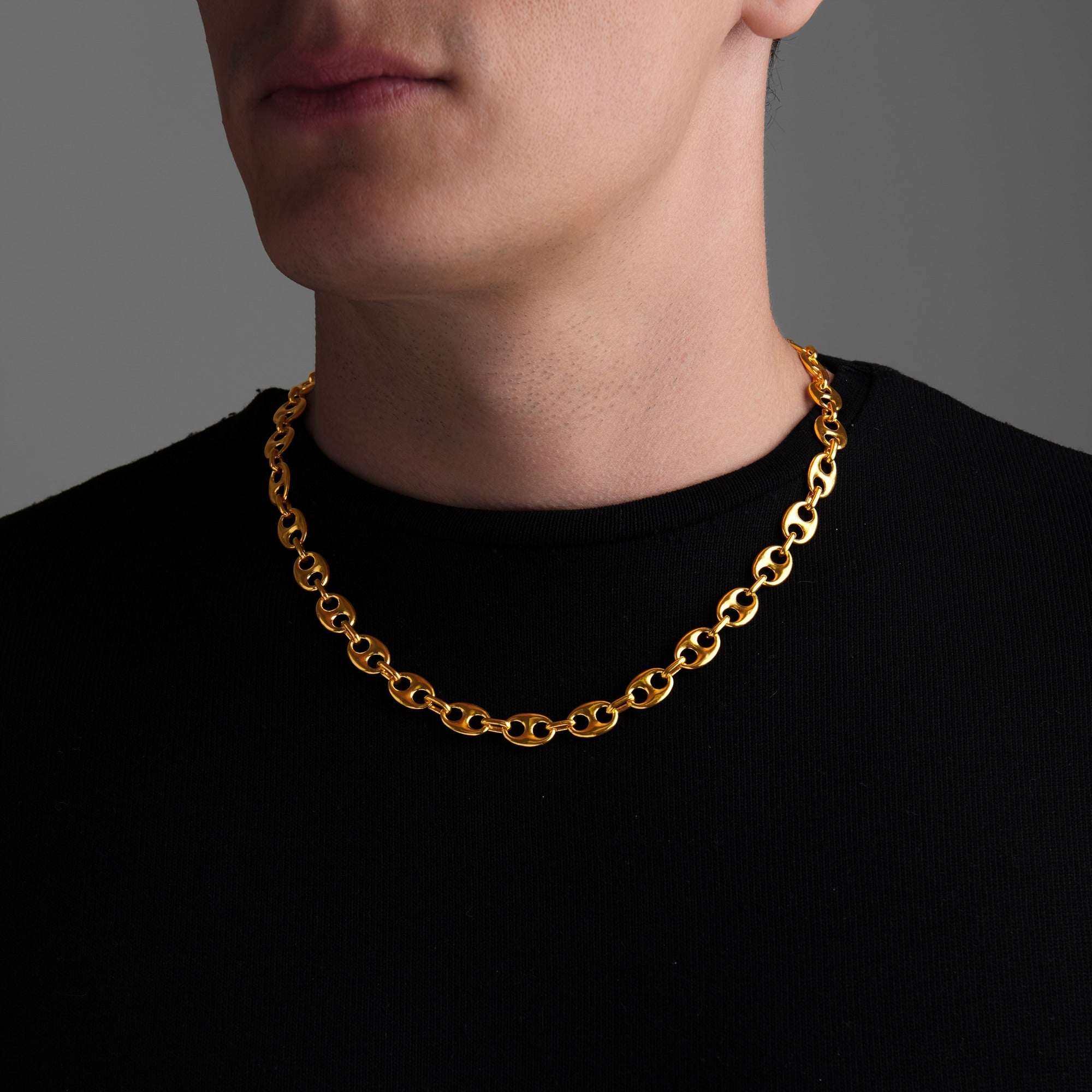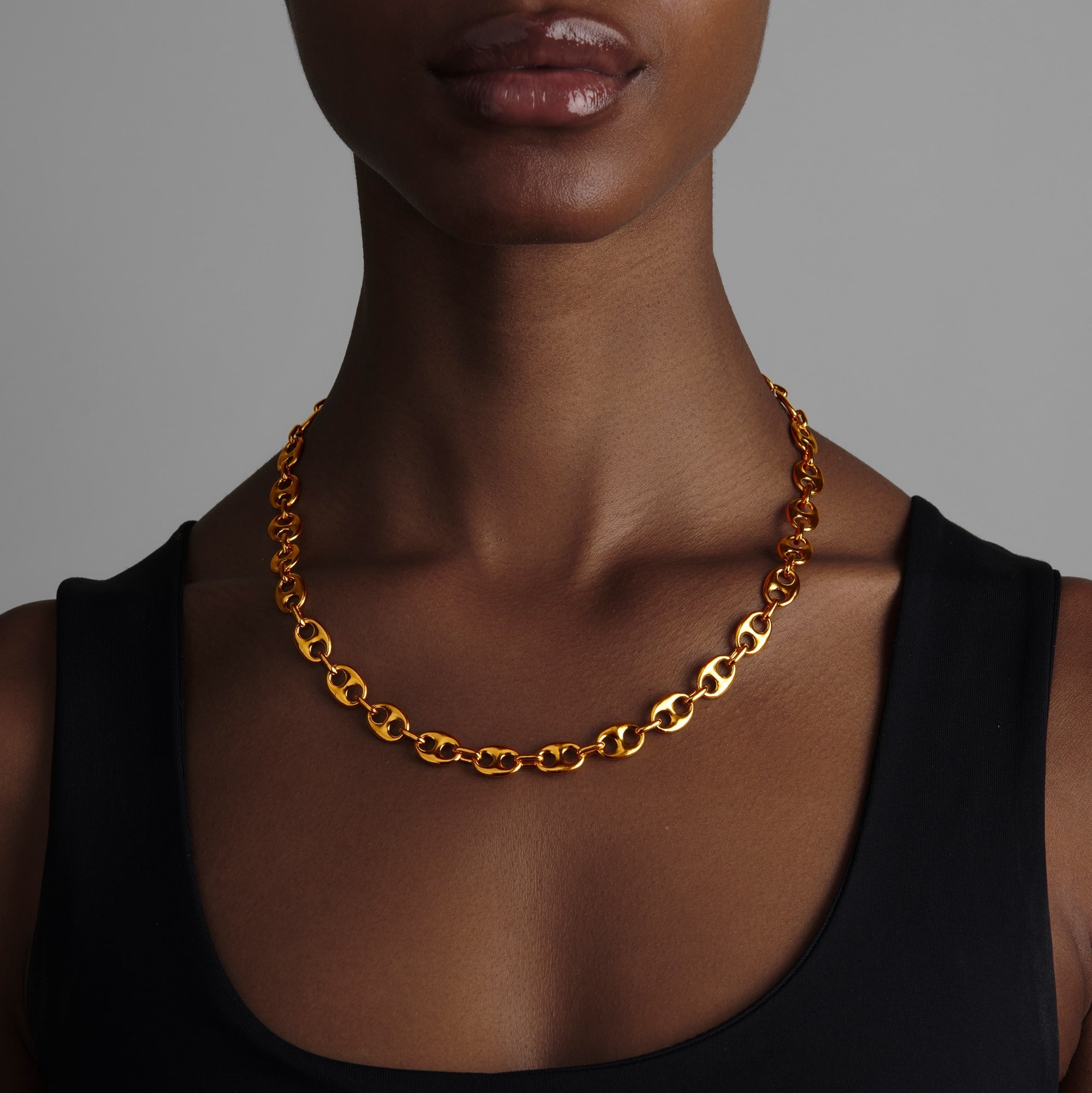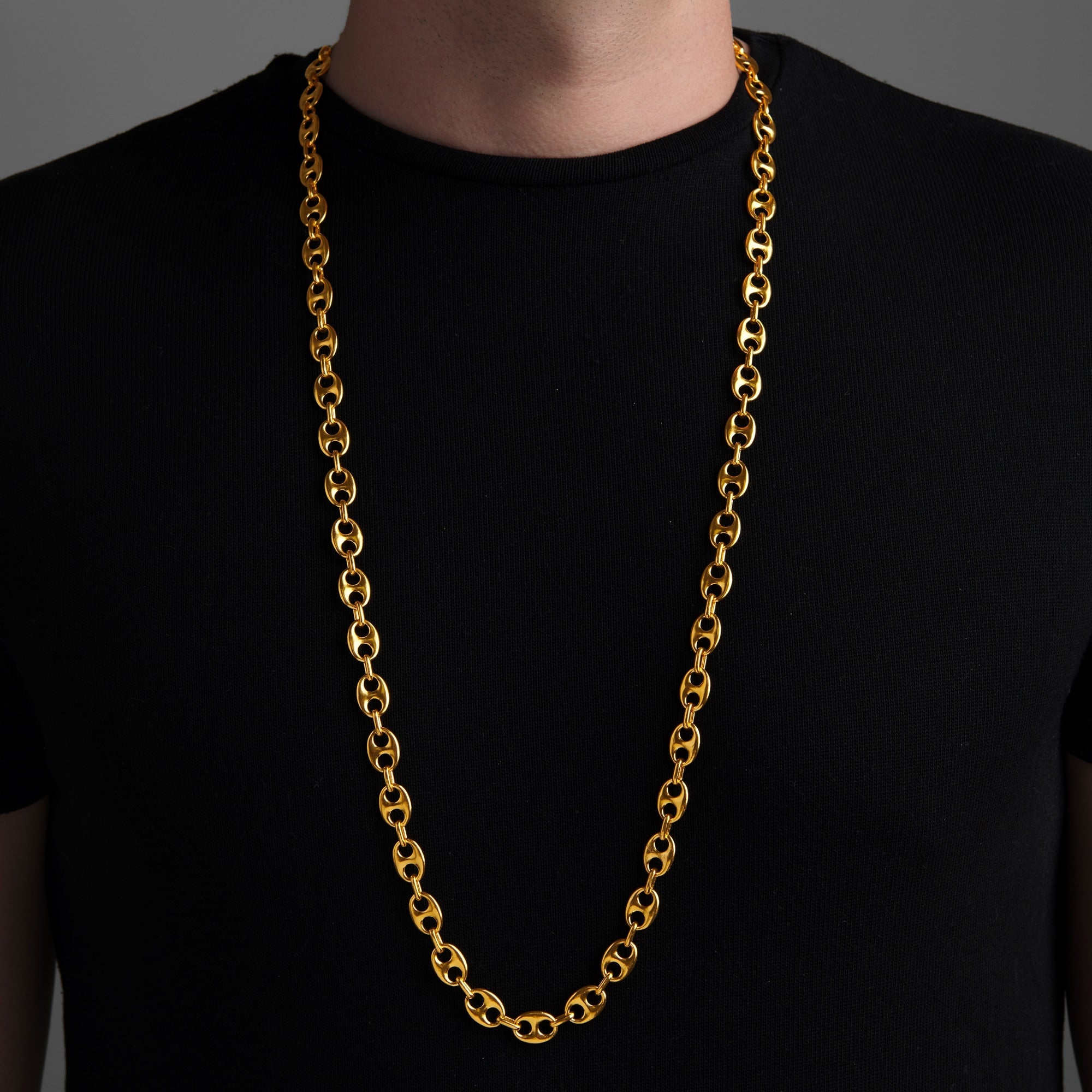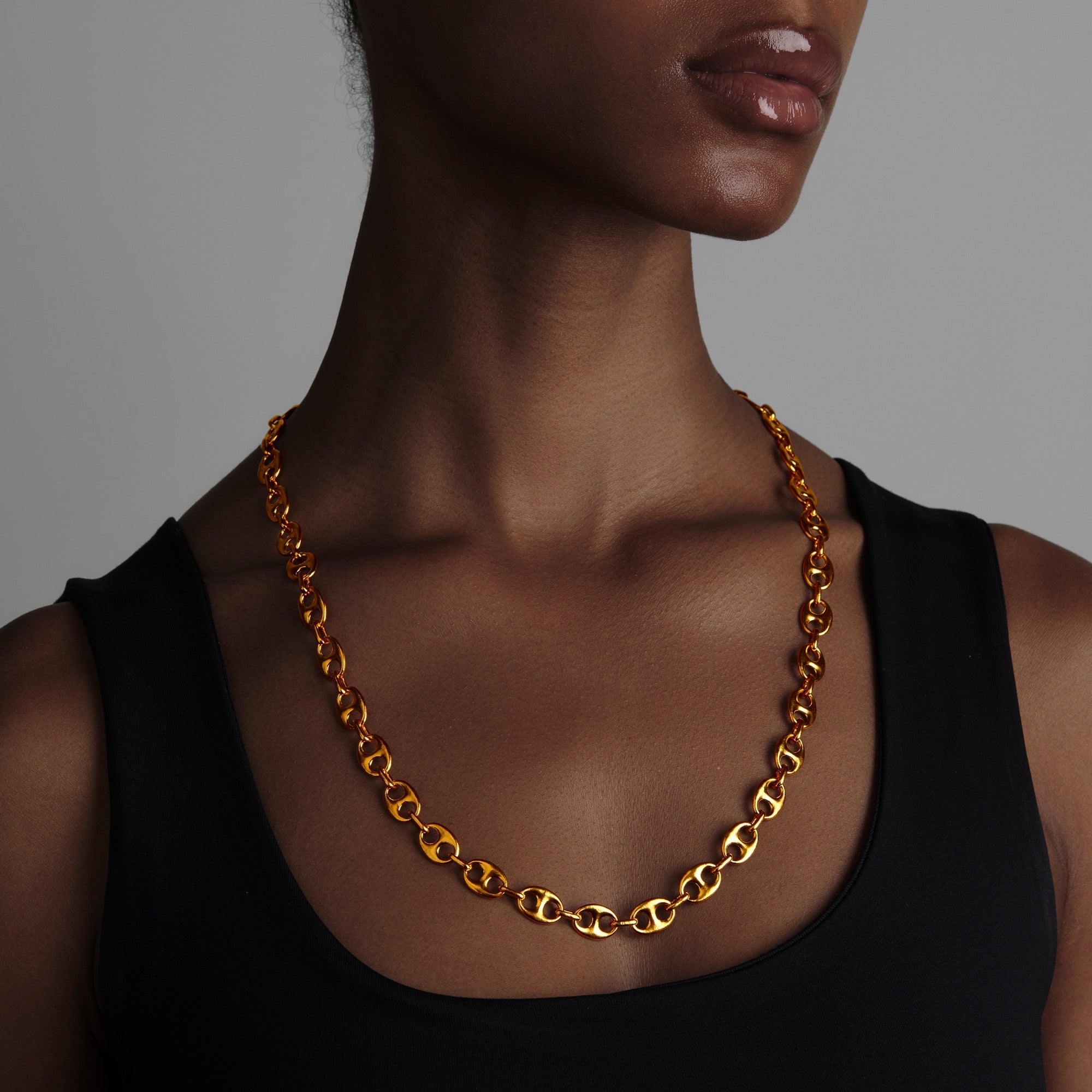 The Mini Mariner Chain is a masterpiece of 24k gold craftsmanship. Each link is individually forged and connected, harkening back to the golden age of the seven seas.