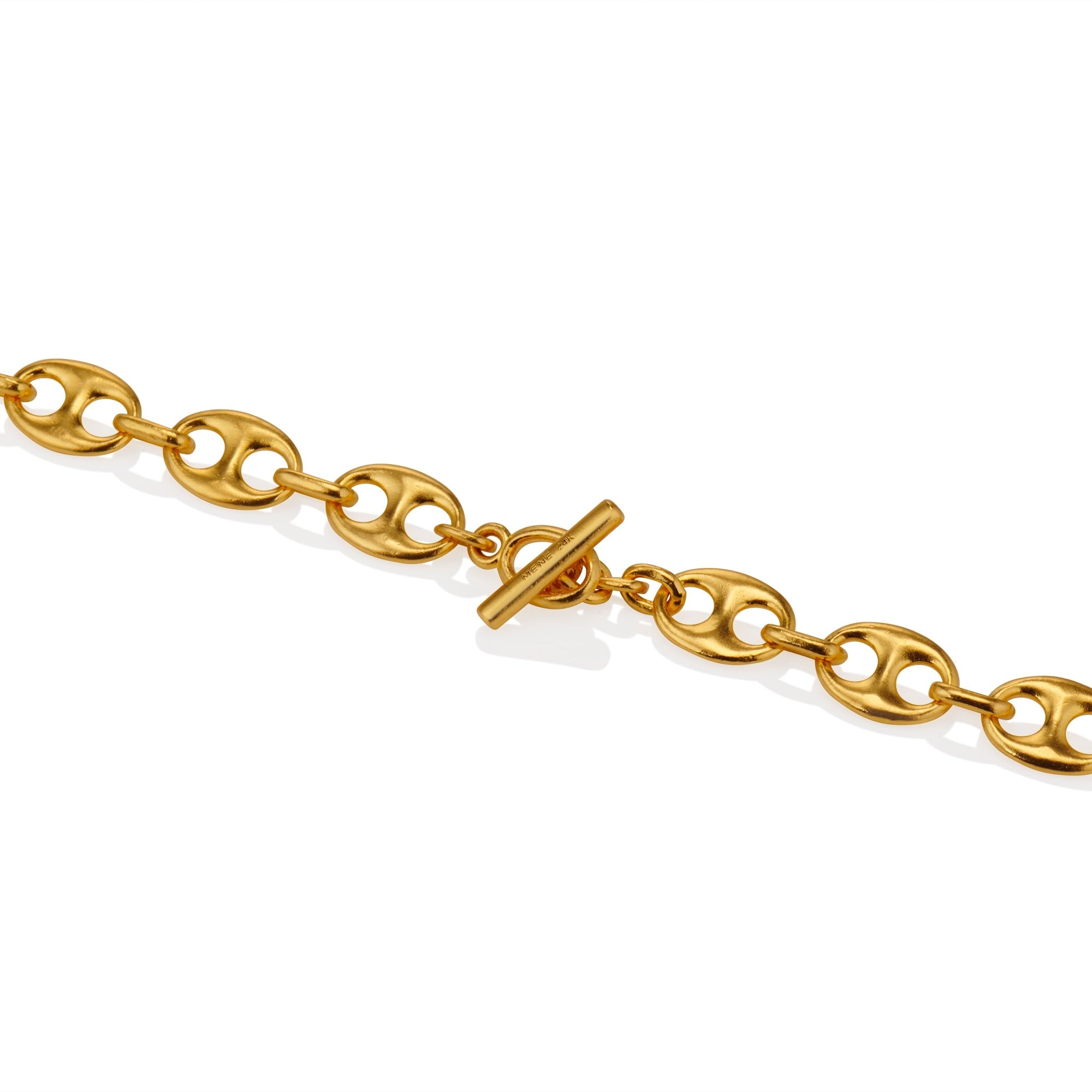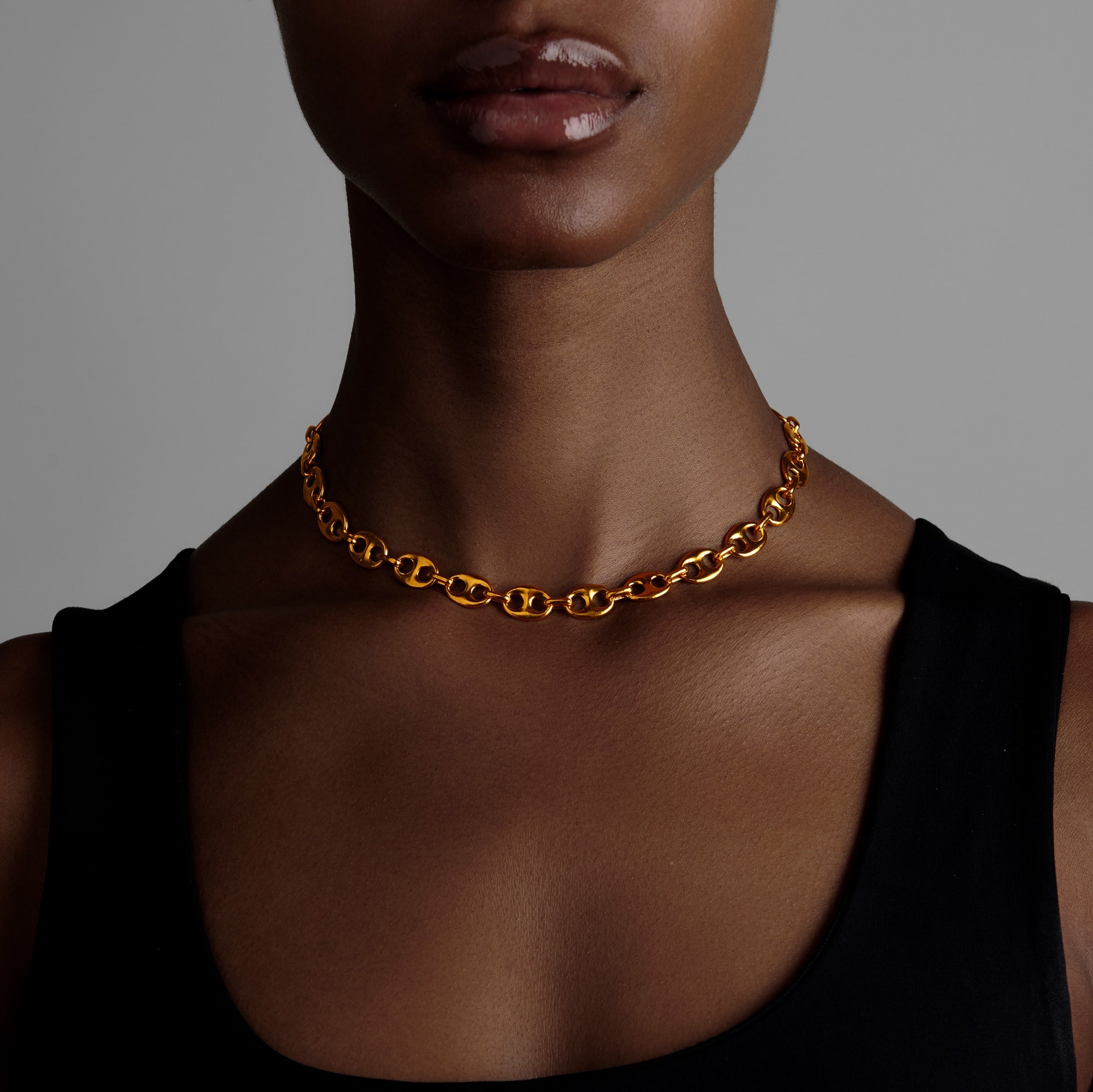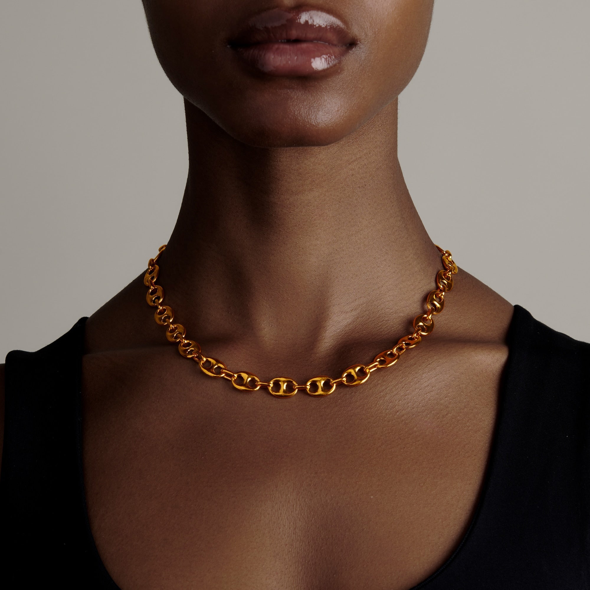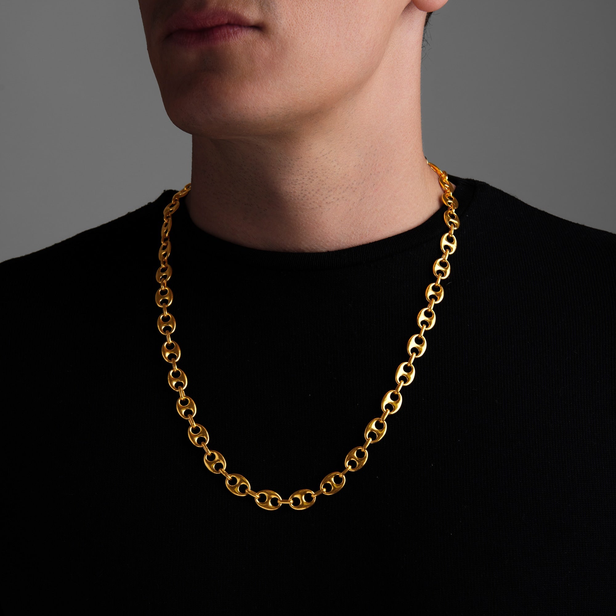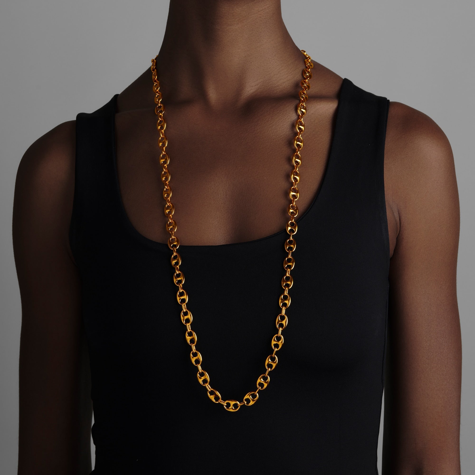 The Mini Mariner Chain is a masterpiece of 24k gold craftsmanship. Each link is individually forged and connected, harkening back to the golden age of the seven seas.