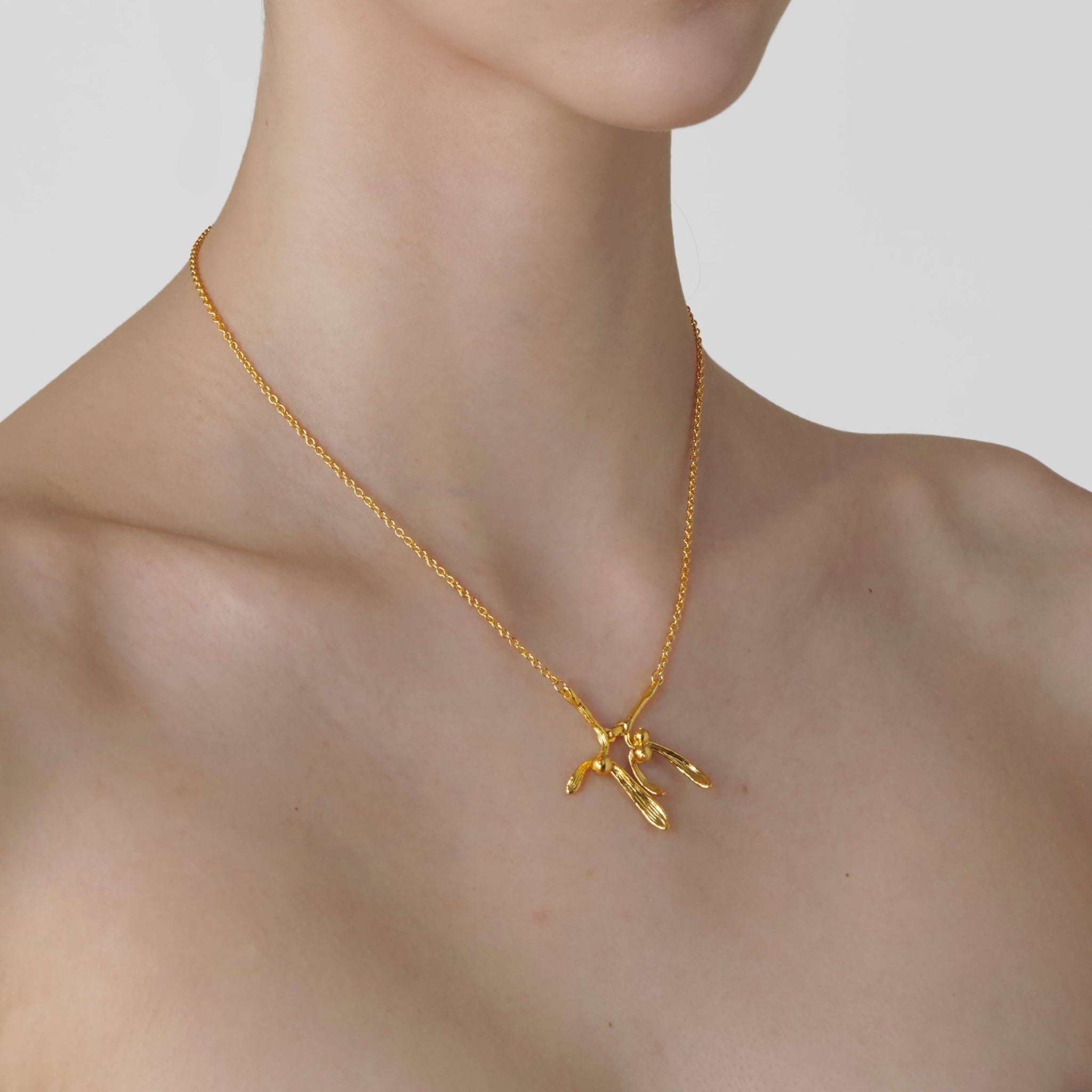 A golden token of tradition and romance. The Mistletoe Necklace captures the charm of winter ritual, sculpted for celebration and memory.