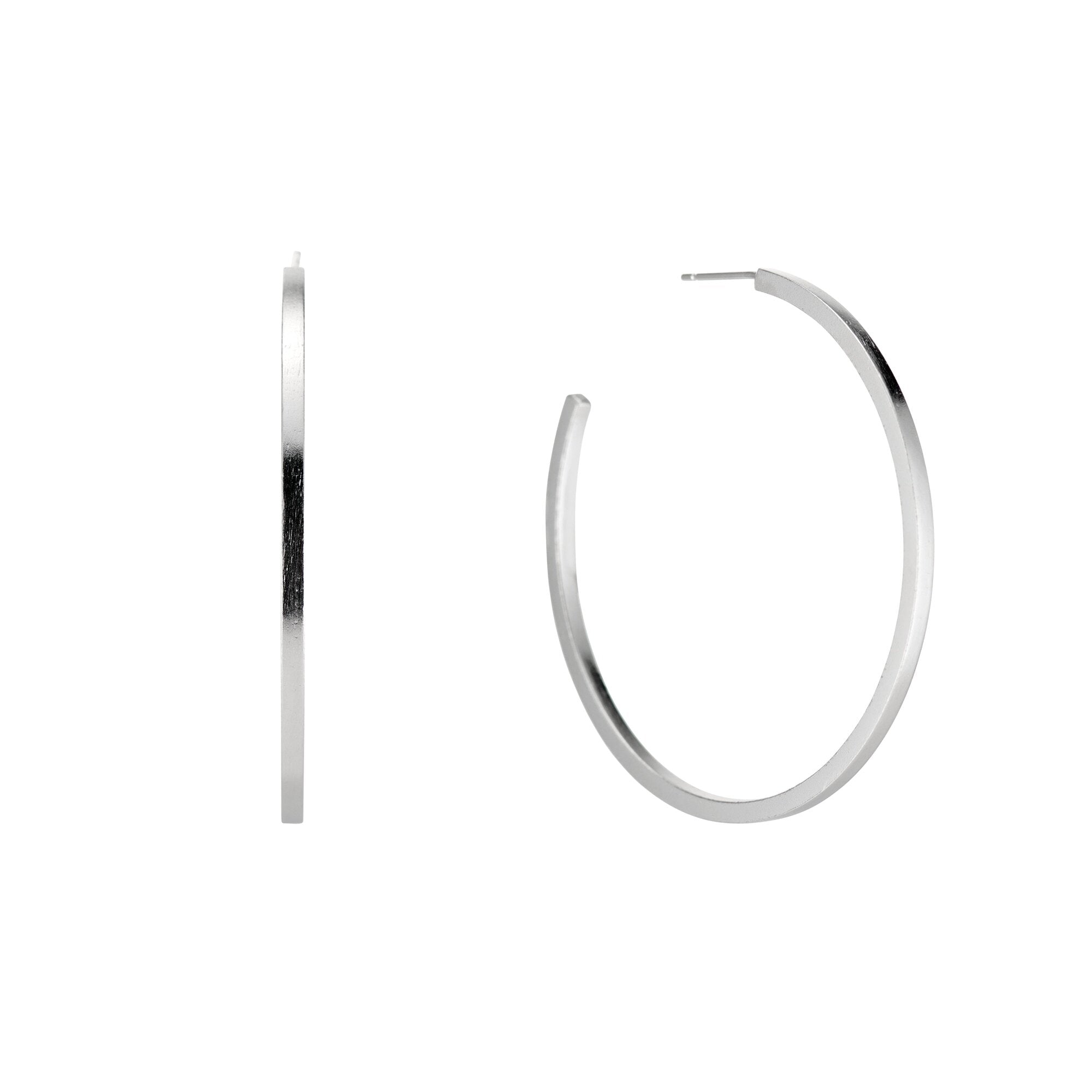 Captivate the room with our 1 & 3/4" pure platinum hoop earrings. Delicate and graceful, they shimmer from every angle in pure precious metal luminosity.