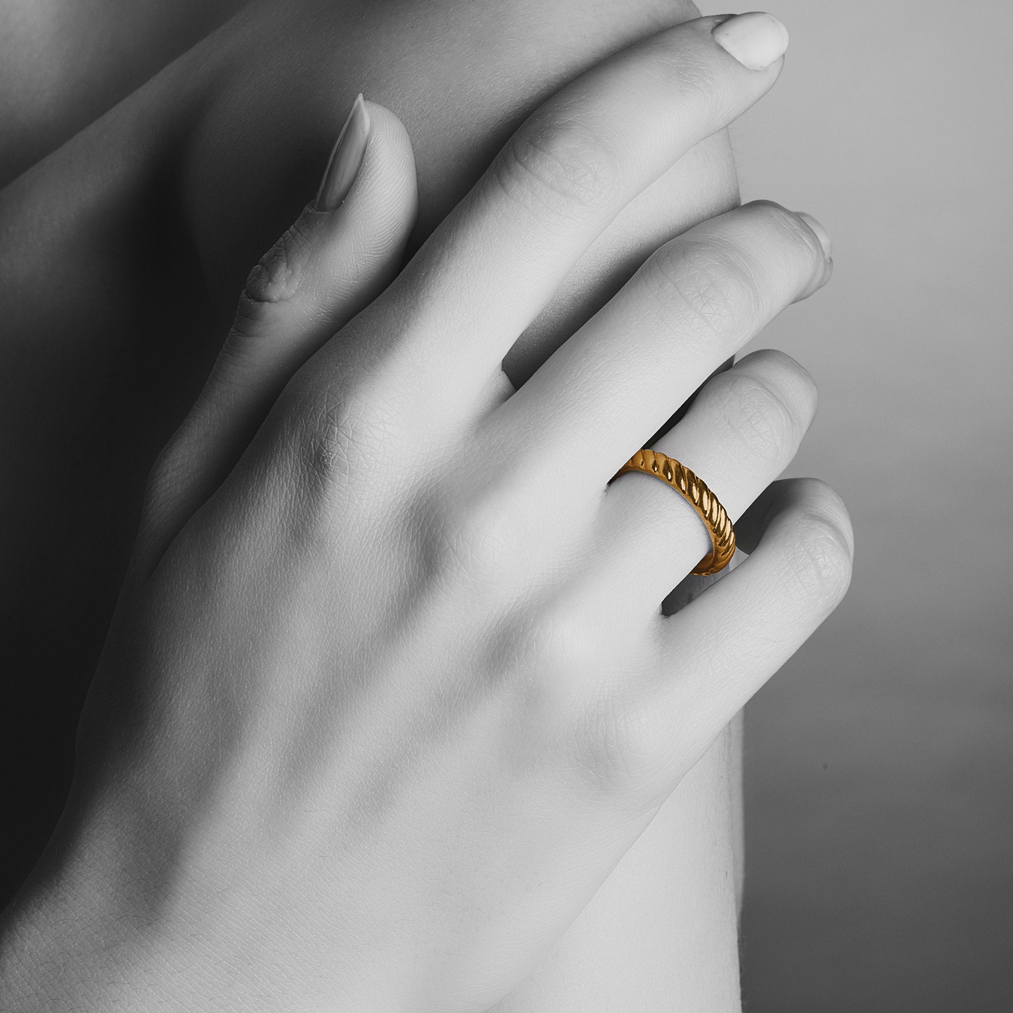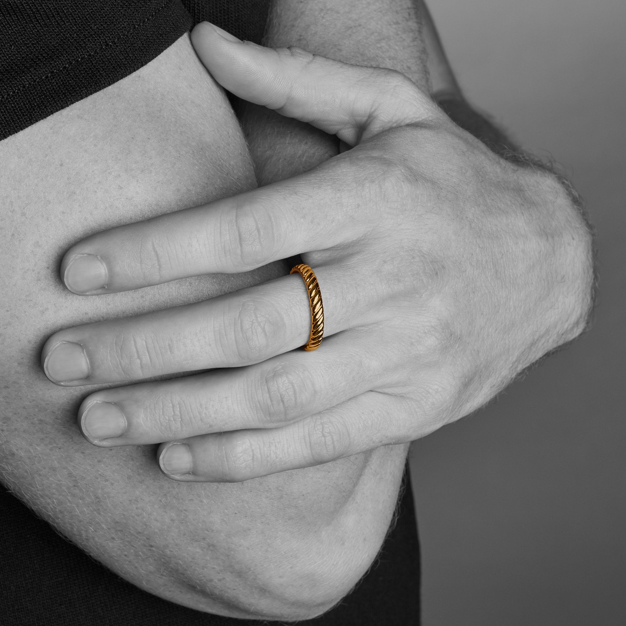 Effortless and attractive, bold and tasteful, the Narrow Rope Band embodies truth and strength. This 24 karat band can be worn on its own or stacked with other rings and bands.