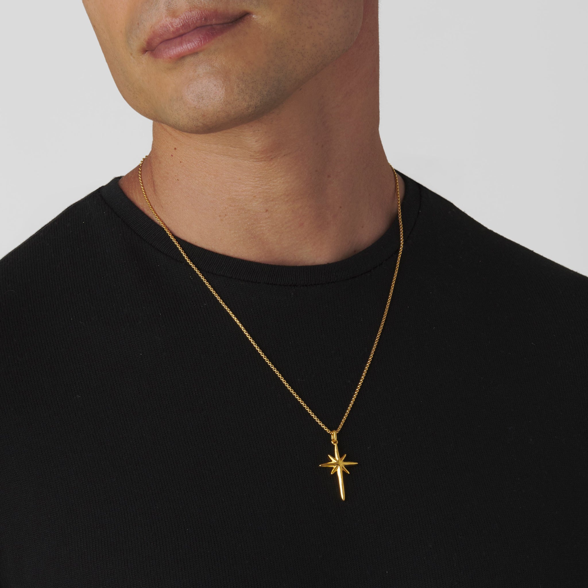 Guided by light, cast in gold. The Northern Star Pendant captures celestial clarity, a luminous marker of direction and destiny.