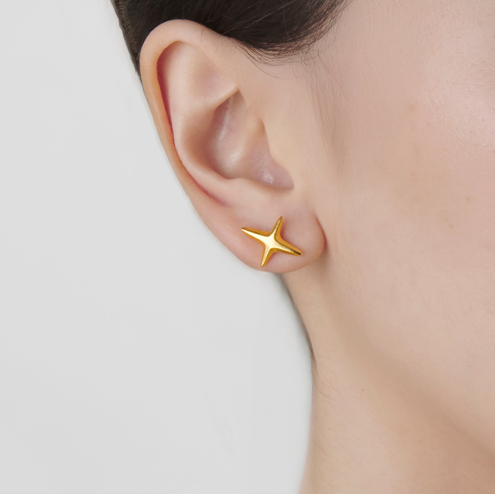 Celestial points of light. The Northern Star Studs in gold frame the face with quiet brilliance, a subtle tribute to direction and wonder.