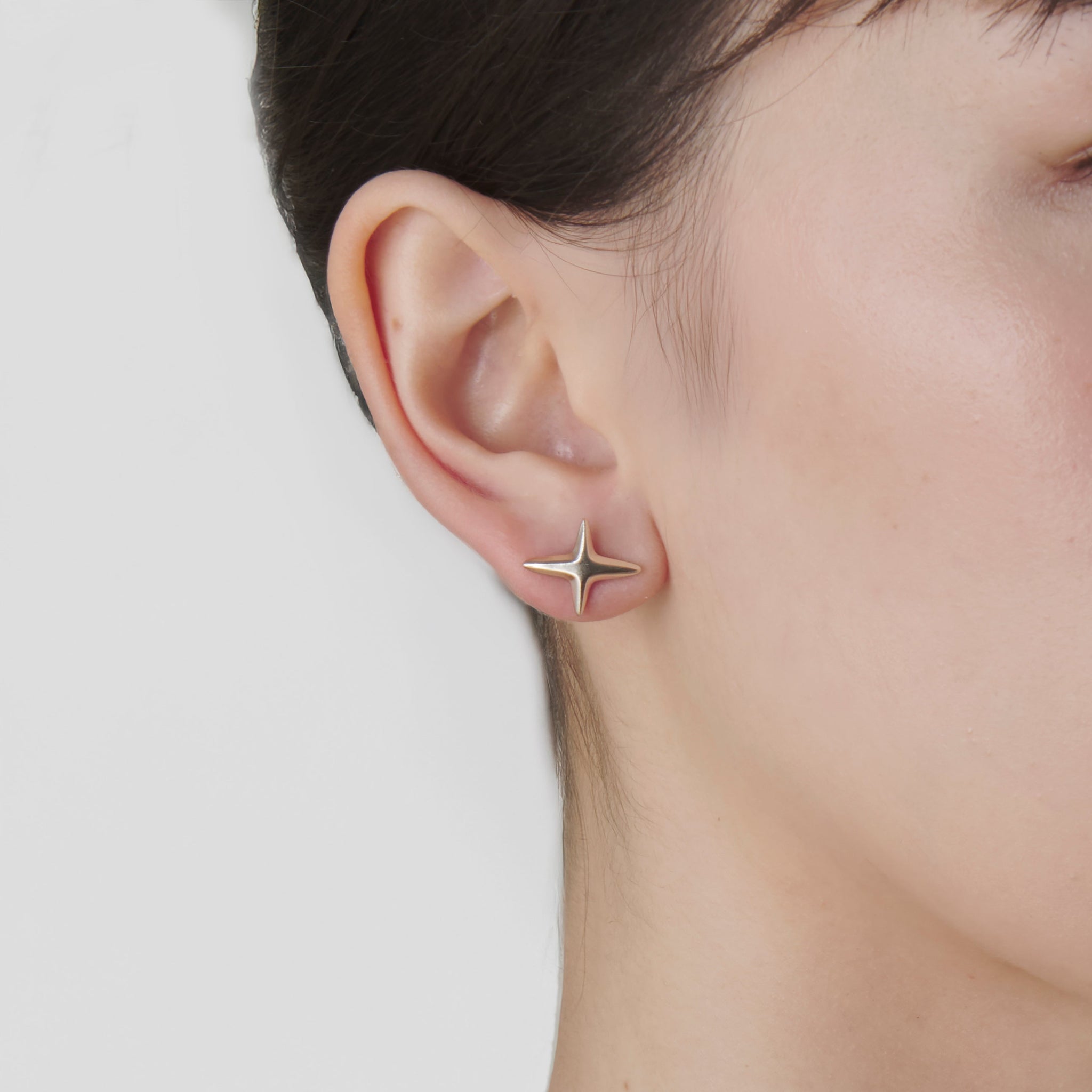 Celestial light, cool and enduring. The Northern Star Studs in platinum frame the face with quiet brilliance, guiding with subtle strength.