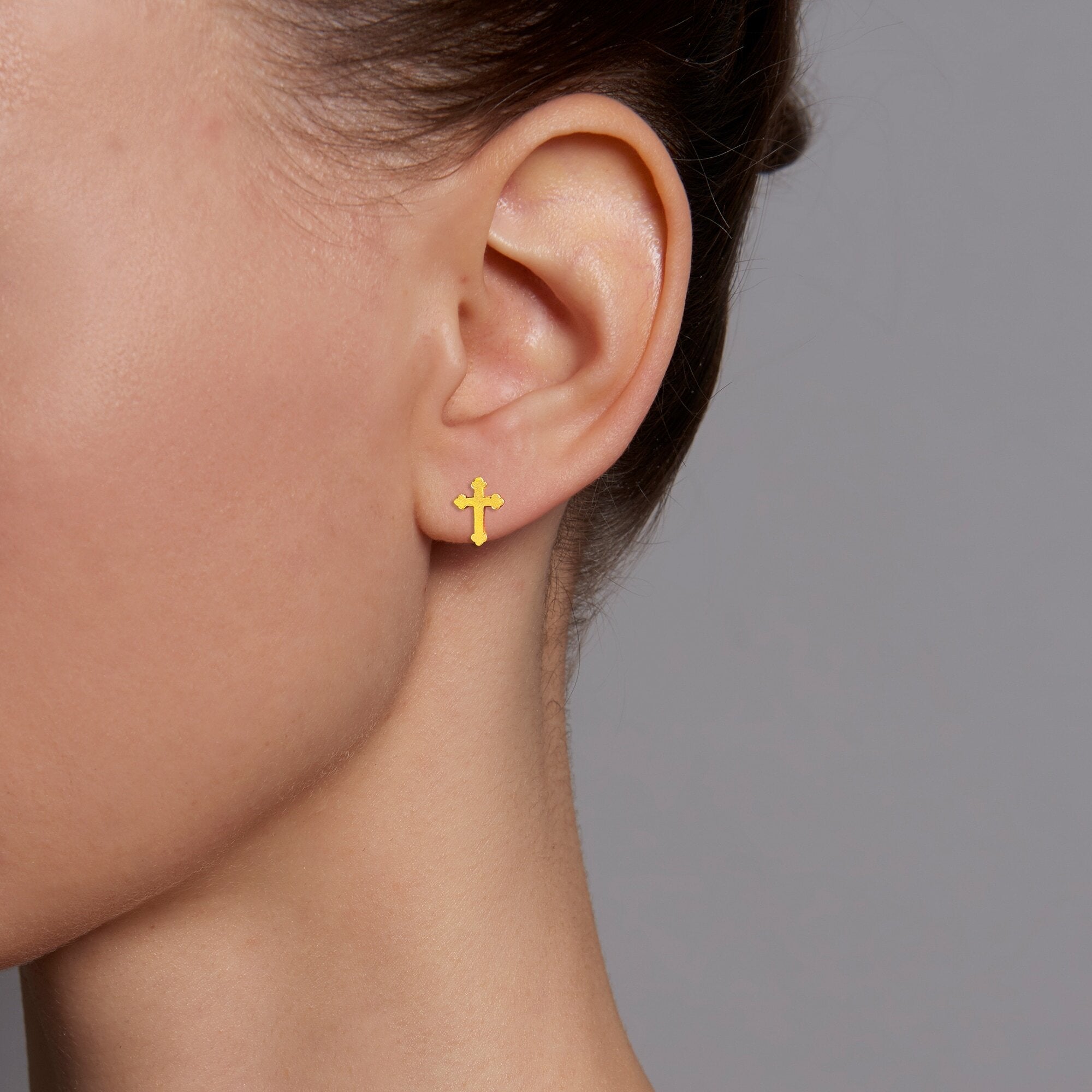 The perfect stud earrings featuring our classic Ornate Cross, a 24K golden token of everlasting faith.