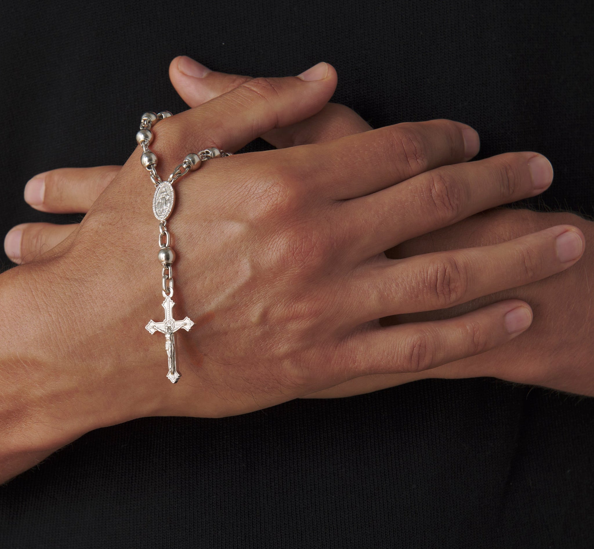 Cool prayers traced in luminous light. The Palm Rosary in pure platinum reflects devotion with quiet radiance, each bead a lasting marker of faith and strength.