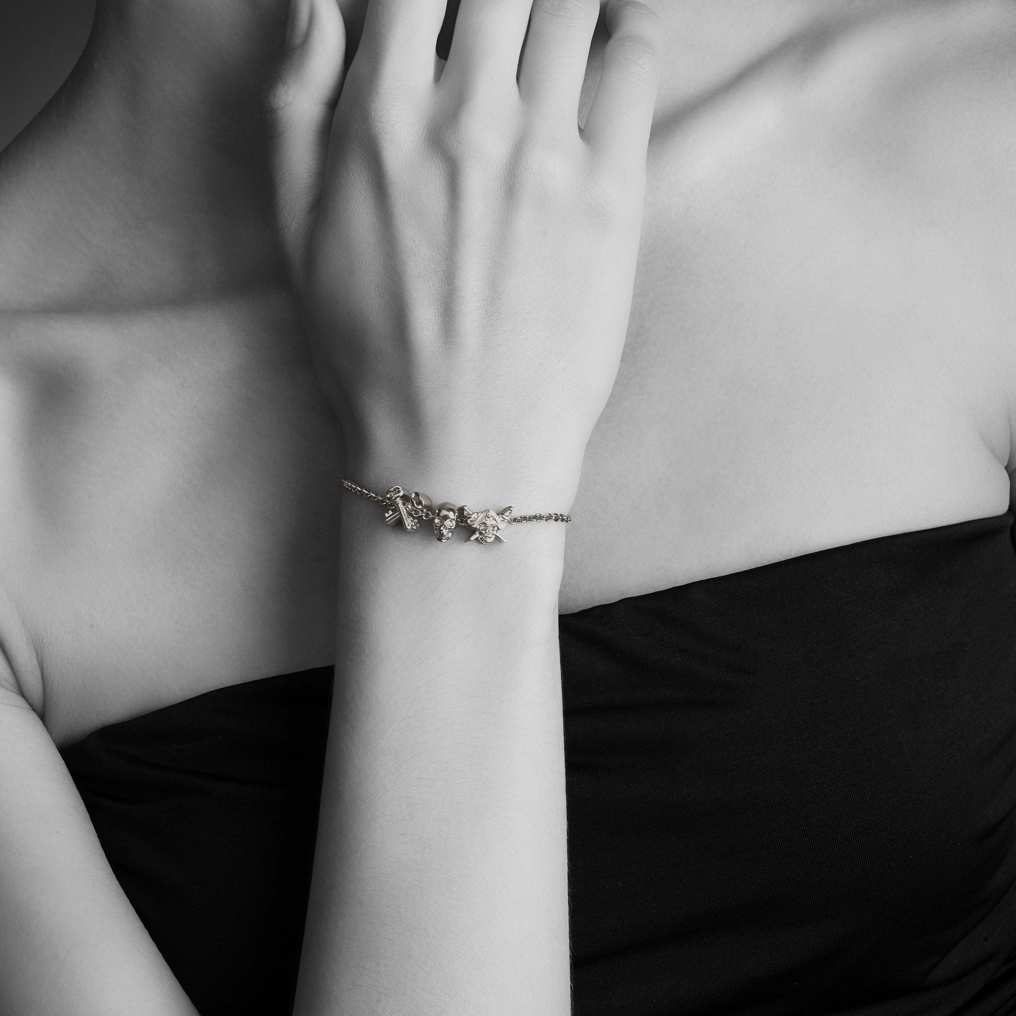 A pure platinum bandit, a buccaneer, an evil lover of the seas. The Pirate Skull Charm is a perfect find for the swashbuckling treasure-seeker in all of us.