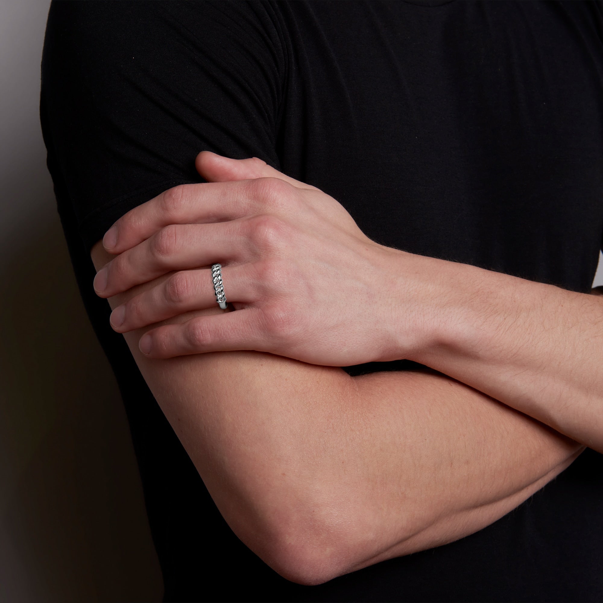 Symbolizing unity and interconnectivity, the simple yet bold pure platinum Rounded Chain Ring shines from every angle.