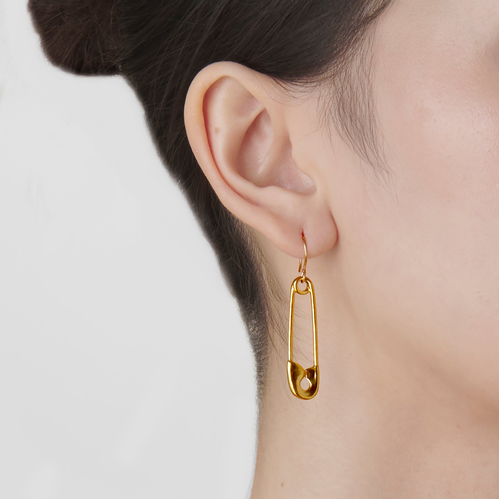 Twin emblems of modern rebellion. The Safety Pin Earrings in 24k gold strike a balance between edge and elegance, designed for quiet statement-making.