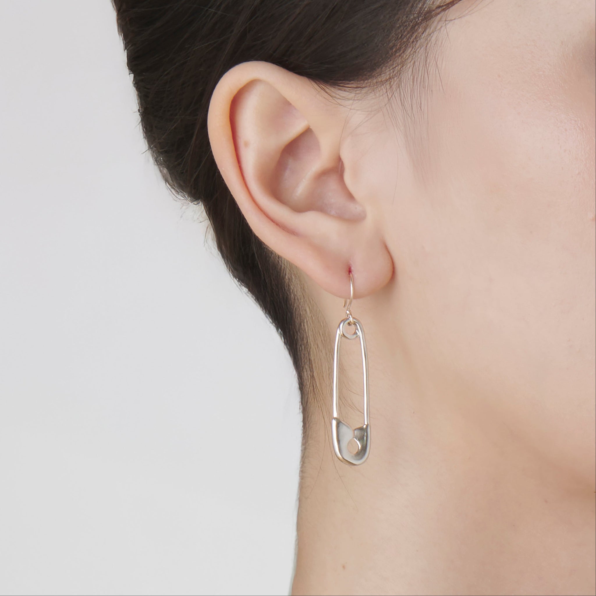 Twin icons of edge and refinement. The Safety Pin Earrings in platinum strike a balance between cool modernity and lasting strength.
