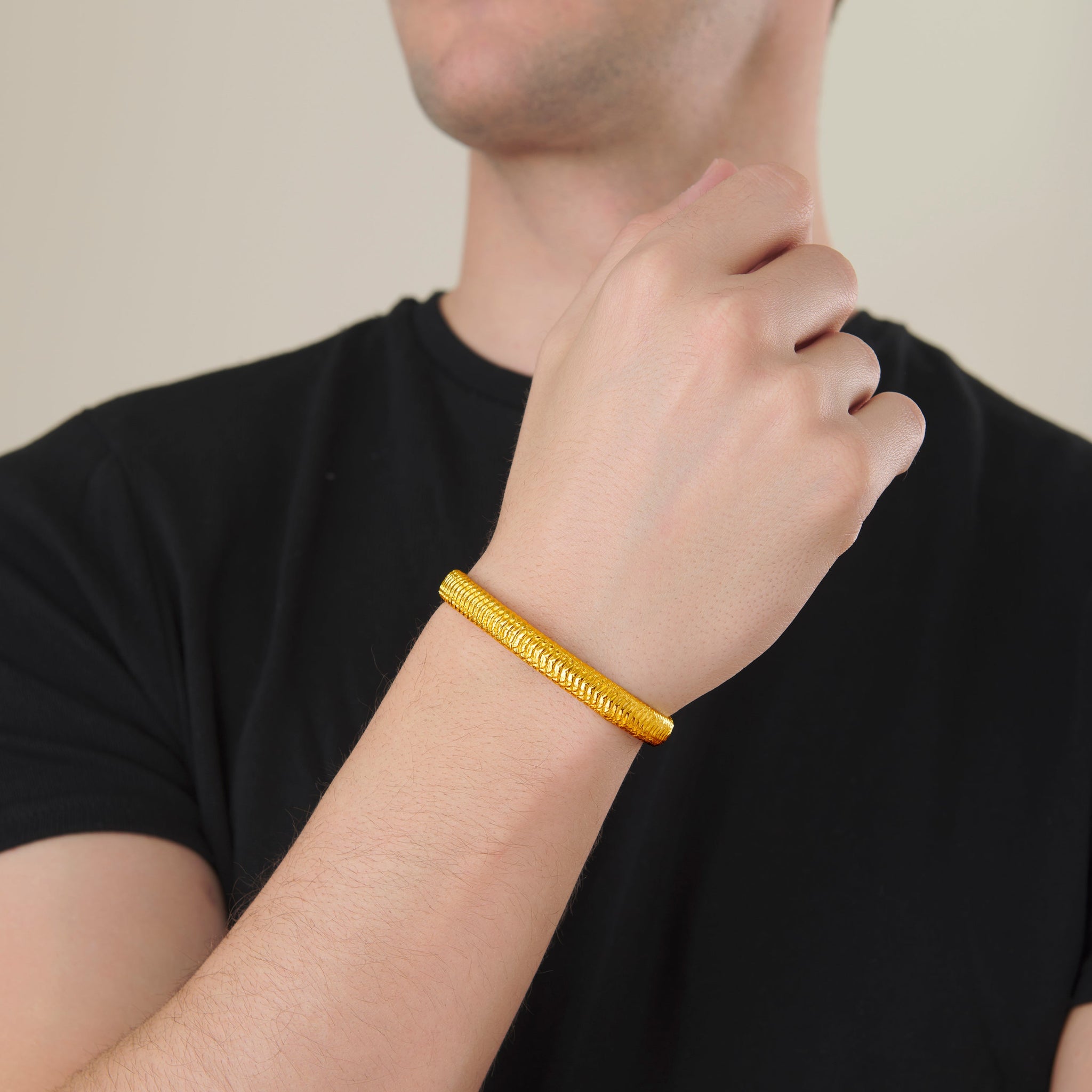 The Snake Belly Cuff in 24k gold wraps the wrist with a powerful, undulating form. Fluid lines and smooth detailing echo the mystique of the serpent, making it a statement of both protection and seduction.