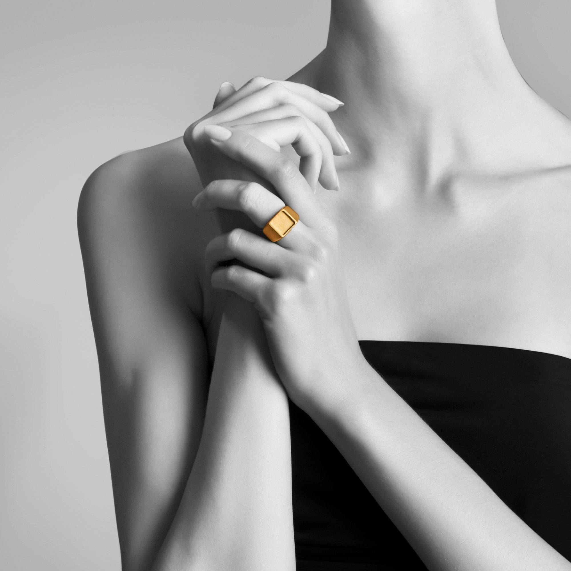 With a large square face for personalization with engraving or a framed photo, the Square Signet Frame Ring is a modern take on a customizable classic.