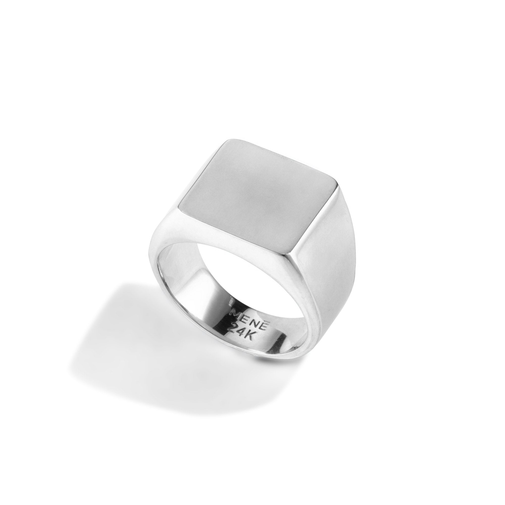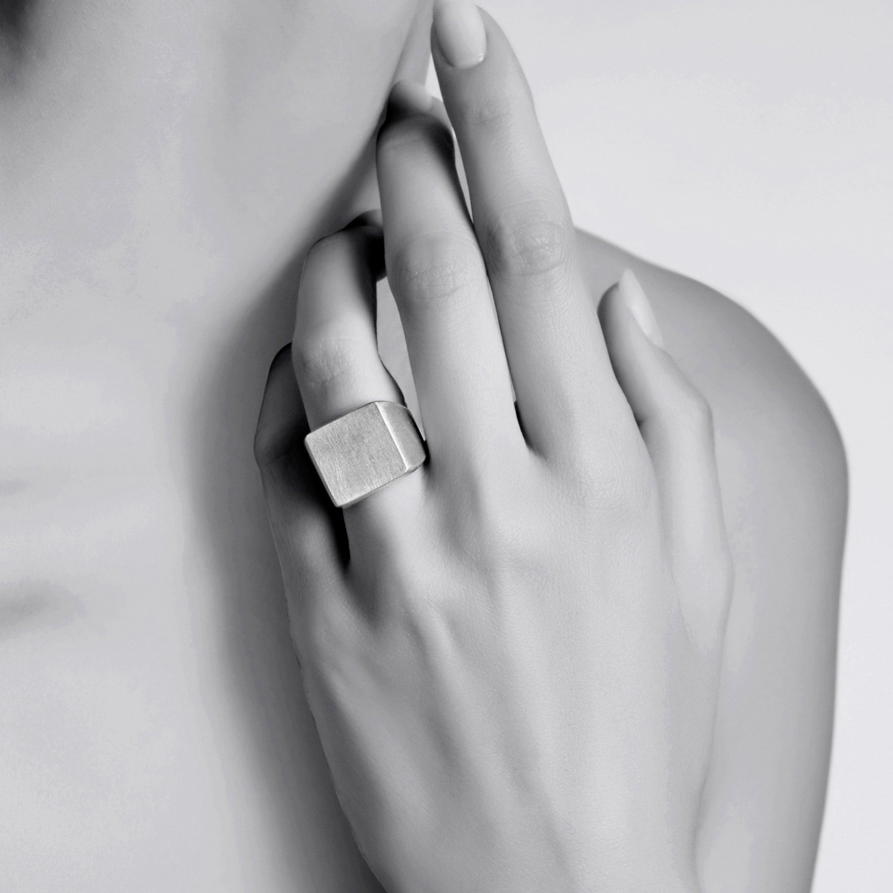 With a large square face for personalization, the pure platinum Square Signet Ring is a modern take on a customizable classic.