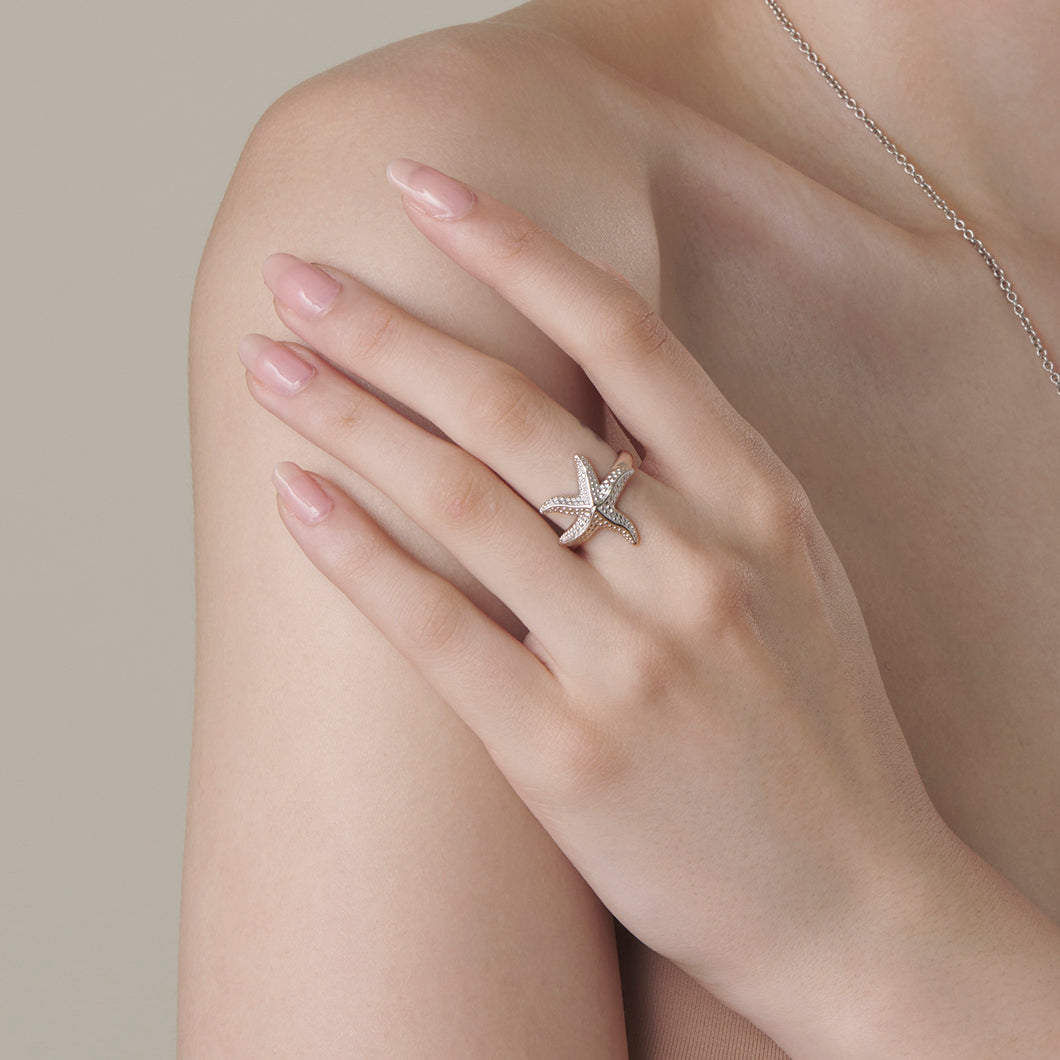 Sculptural and serene, the Starfish Ring wraps the finger in five points of balance and texture. Cast in pure platinum, it celebrates nature’s quiet design brilliance.