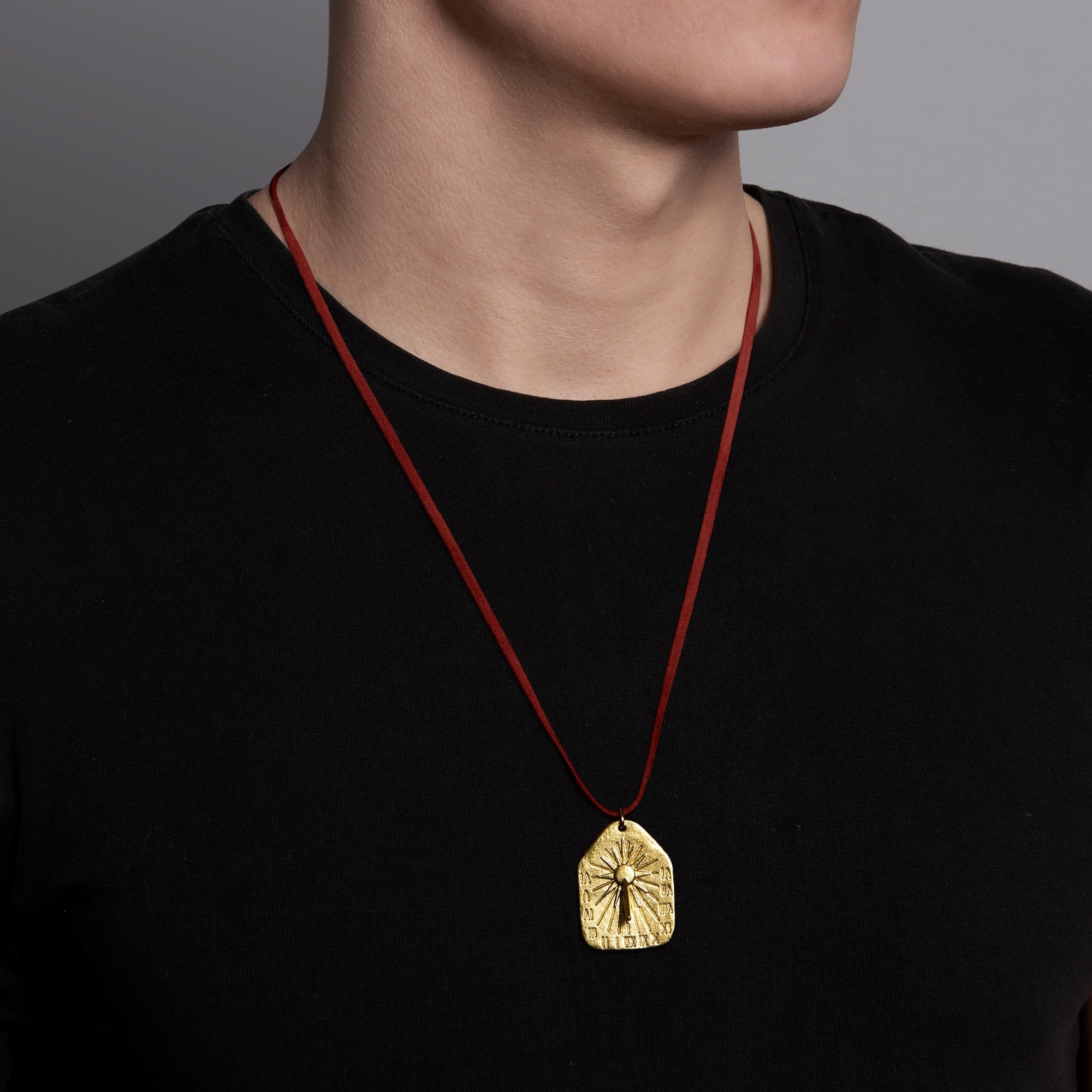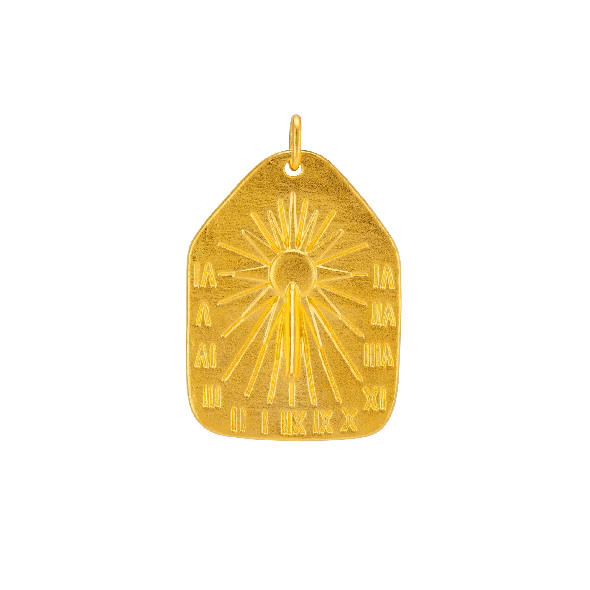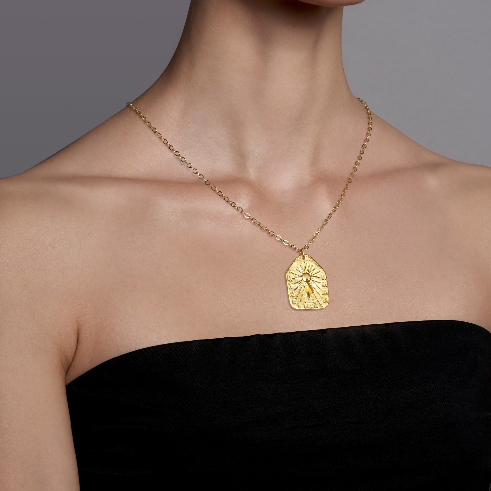 Handcrafted from enduring 24k gold, The Sundial Tablet Medallion embodies the eternal. Available in 5 latitudes.