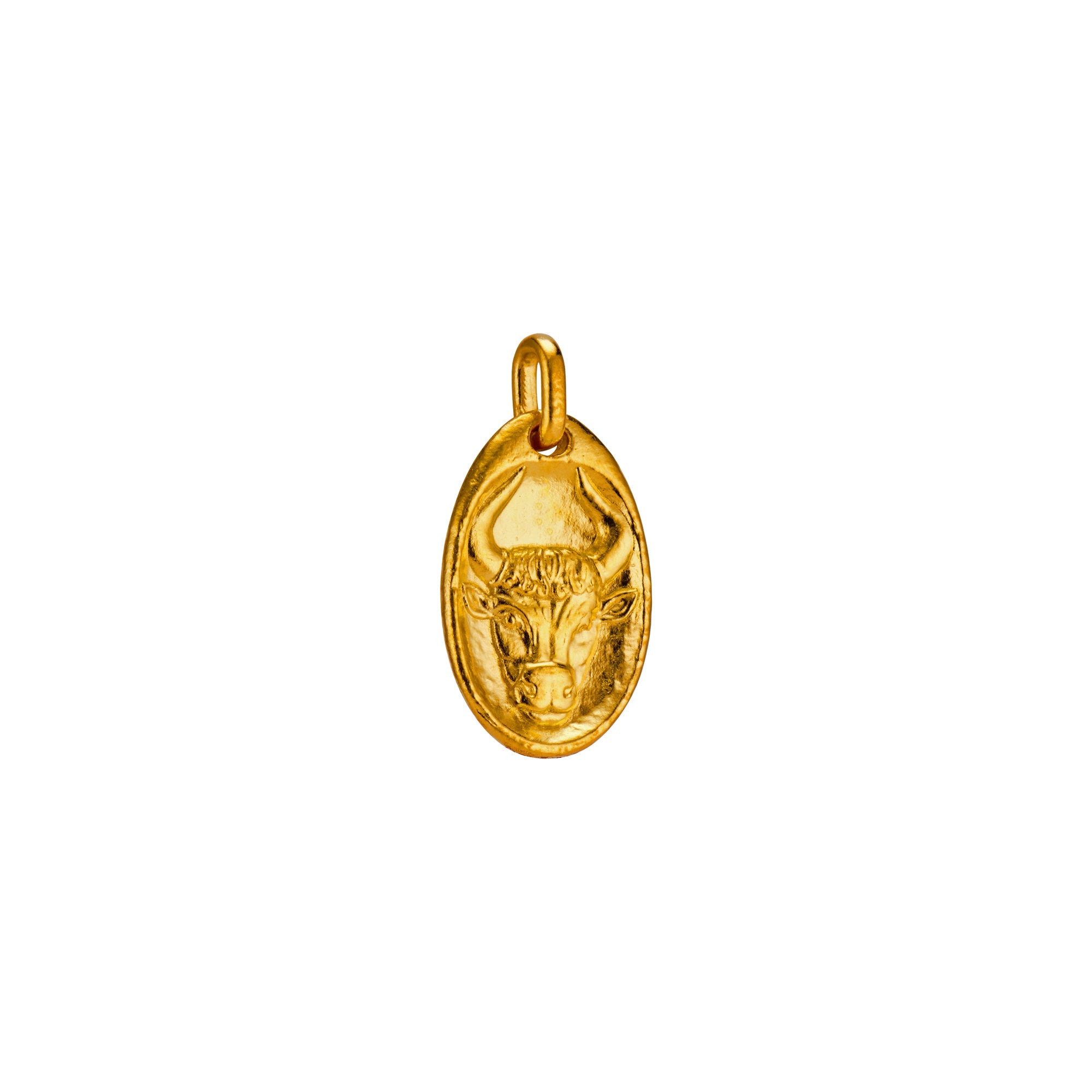 One of the zodiac's most trustworthy and steadfast signs. Adorn the inner zodiac with the physical pleasure of our 24k gold Taurus Medallion.