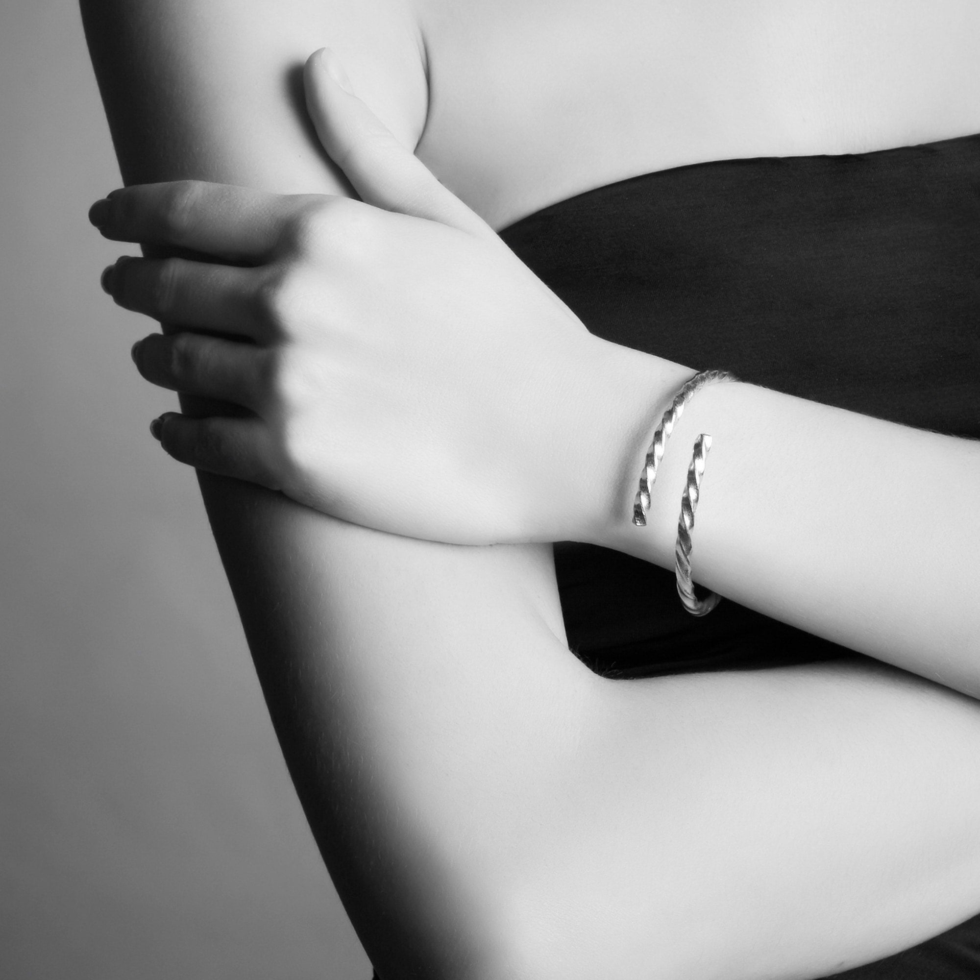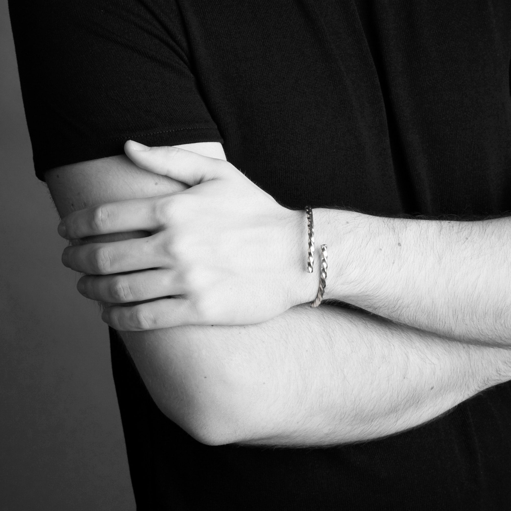 The Menē Torc exudes an ancient and unknown energy that must be experienced. Inspired by ancient designs from the bronze age, this bracelet embraces the radiance and luster of pure platinum.