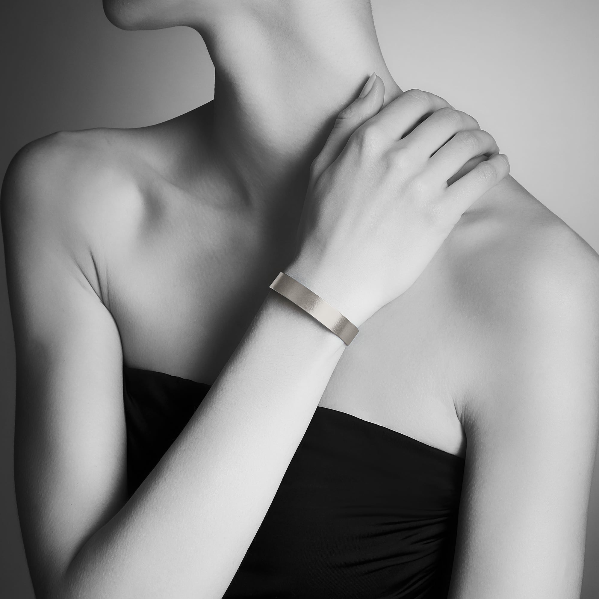 Modern and minimal, the pure platinum Verona Cuff bracelet exudes understated glamour and empowerment.