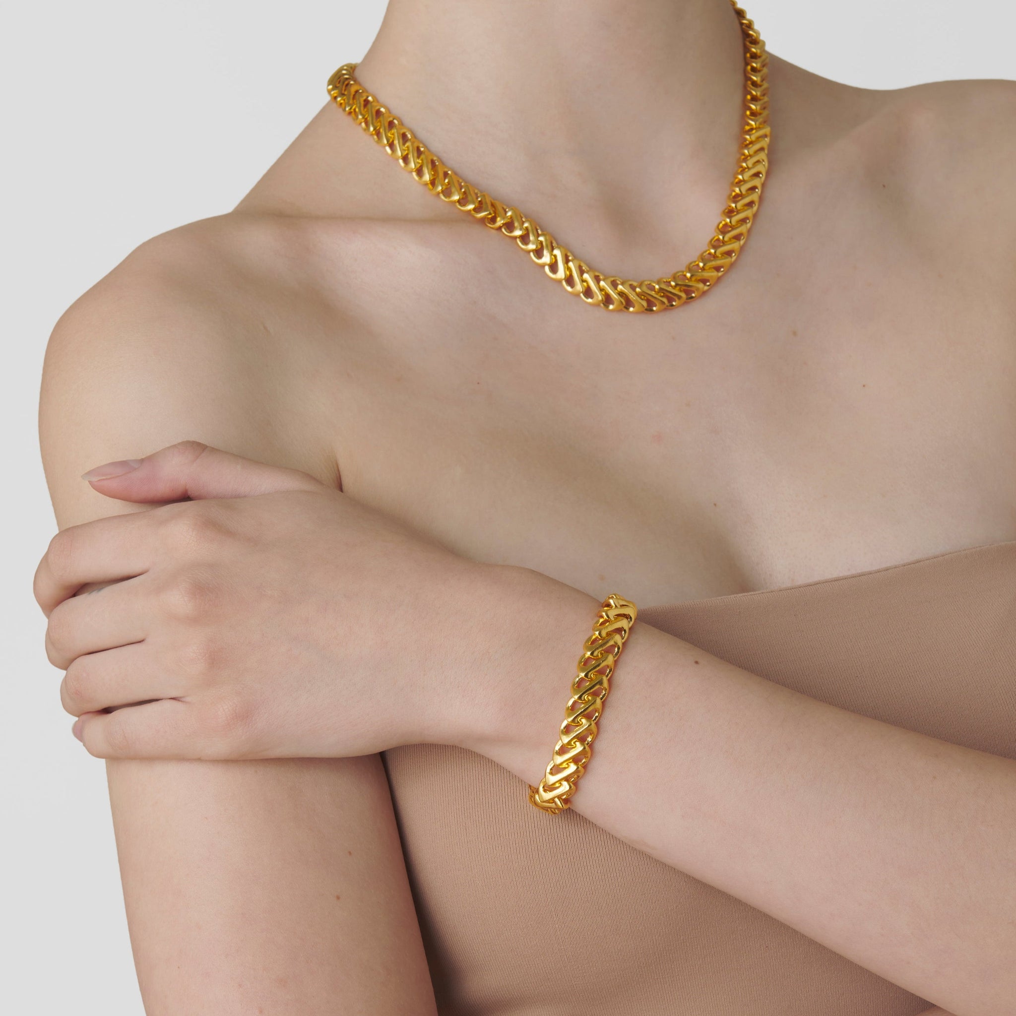 A golden sequence of form and function. The Vertebrae Link Bracelet mirrors nature’s design brilliance, fluid yet strong, sculpted in pure gold.