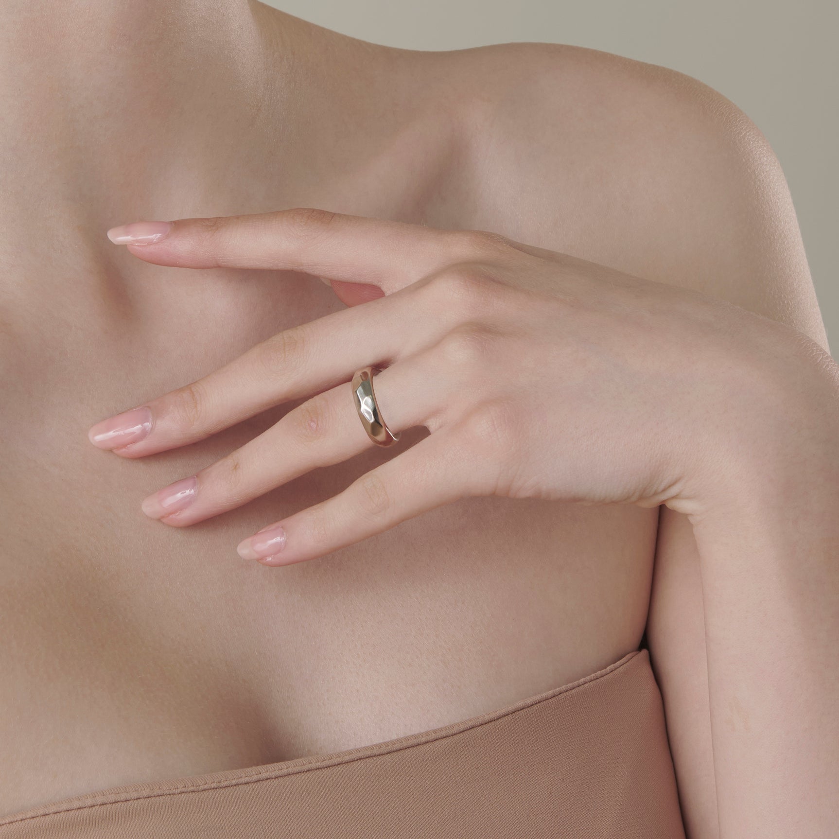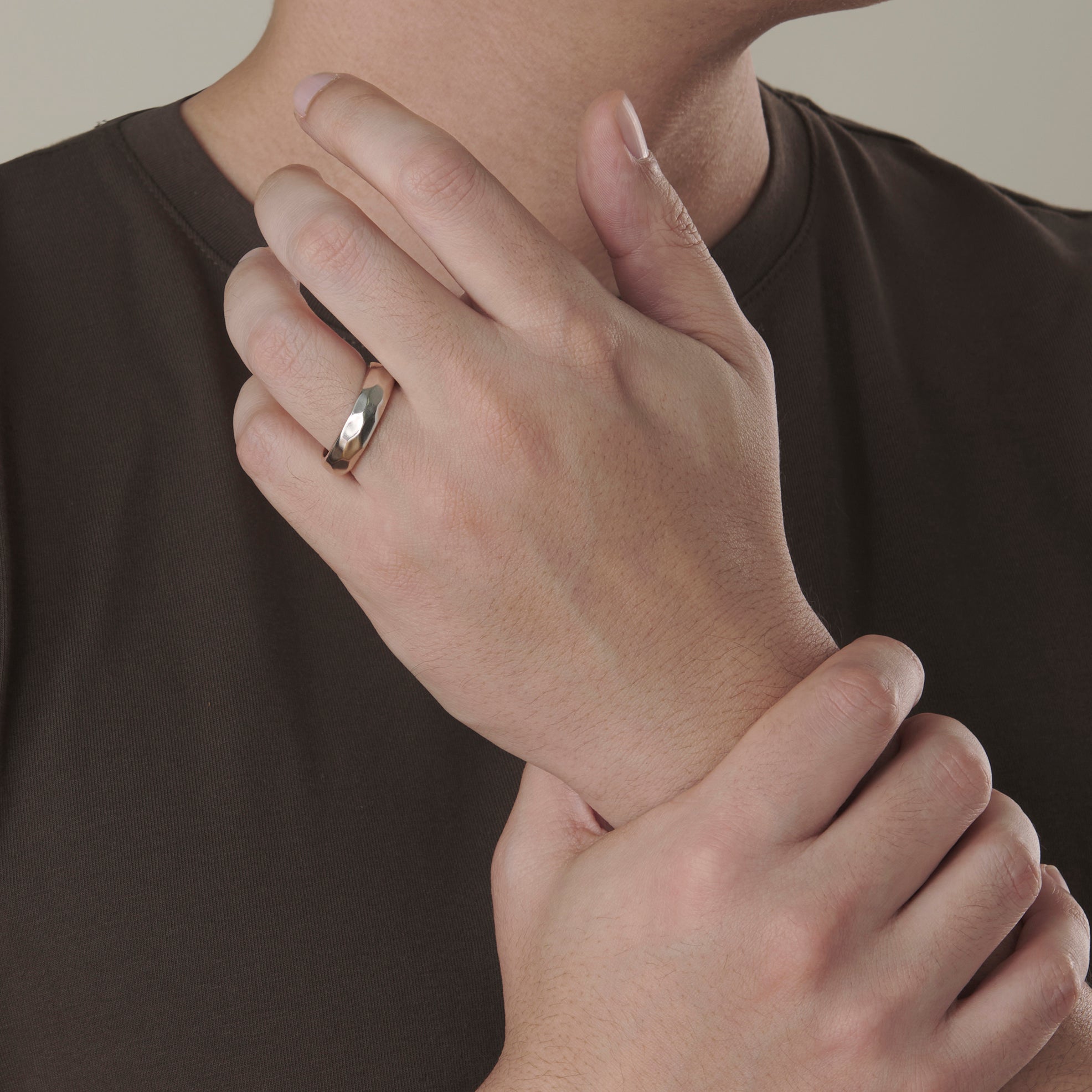 A bold take on geometry. The Wide Faceted Band in pure platinum is sculpted with angular facets that catch the light from every direction, commanding yet refined.