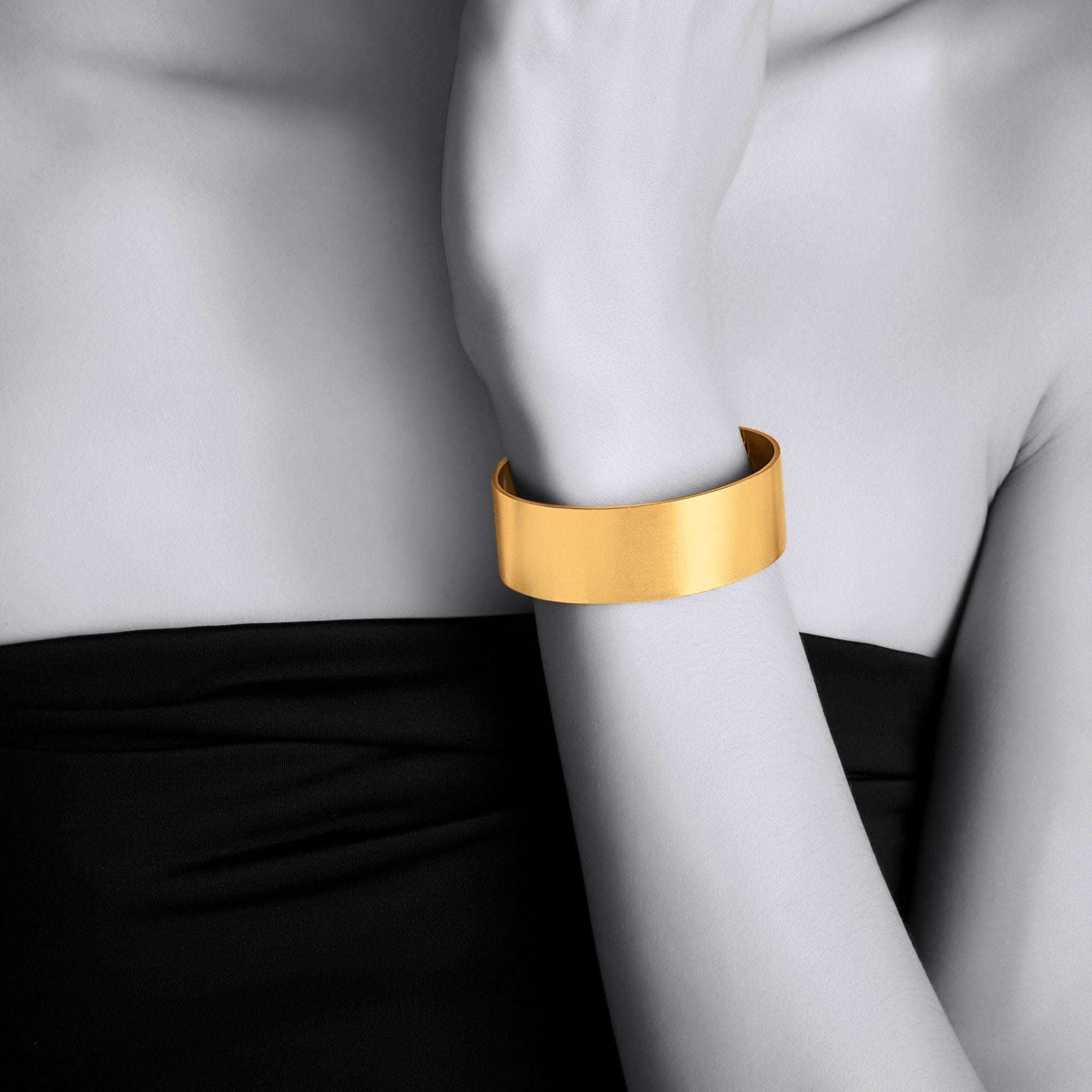 Modern and minimal, the solid 24k gold Wide Verona Cuff bracelet exudes understated glamour and empowerment.